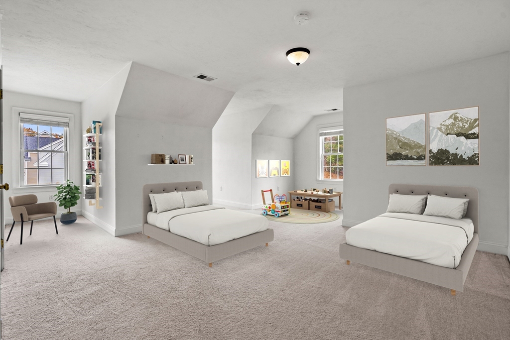 Beautiful stand-alone single family detached condo in the sought-after Academy Hill neighborhood, offering bright, open-concept living and thoughtful design. A welcoming farmer’s porch leads to a spacious kitchen and living room with custom moldings, hardwood floors, granite counters, a center island breakfast bar, walk-in pantry, and oversized windows. Enjoy cozy evenings by the gas fireplace or step through the sliders to a private deck for outdoor dining. The first-floor primary suite features a walk-in closet and a lovely bath with a double vanity and step-in shower. A formal dining room with wainscoting, half bath, and designated laundry room complete the main level. Upstairs offers two large bedrooms, family room, an updated full bath, and two added sun-filled bonus rooms with hardwood floors and great storage. The corner lot provides lovely green space. The condo fee covers all exterior care, including roof and siding—carefree living in a top-ranked school district!