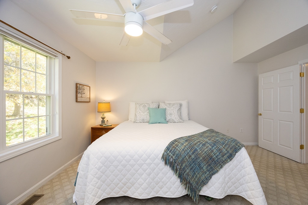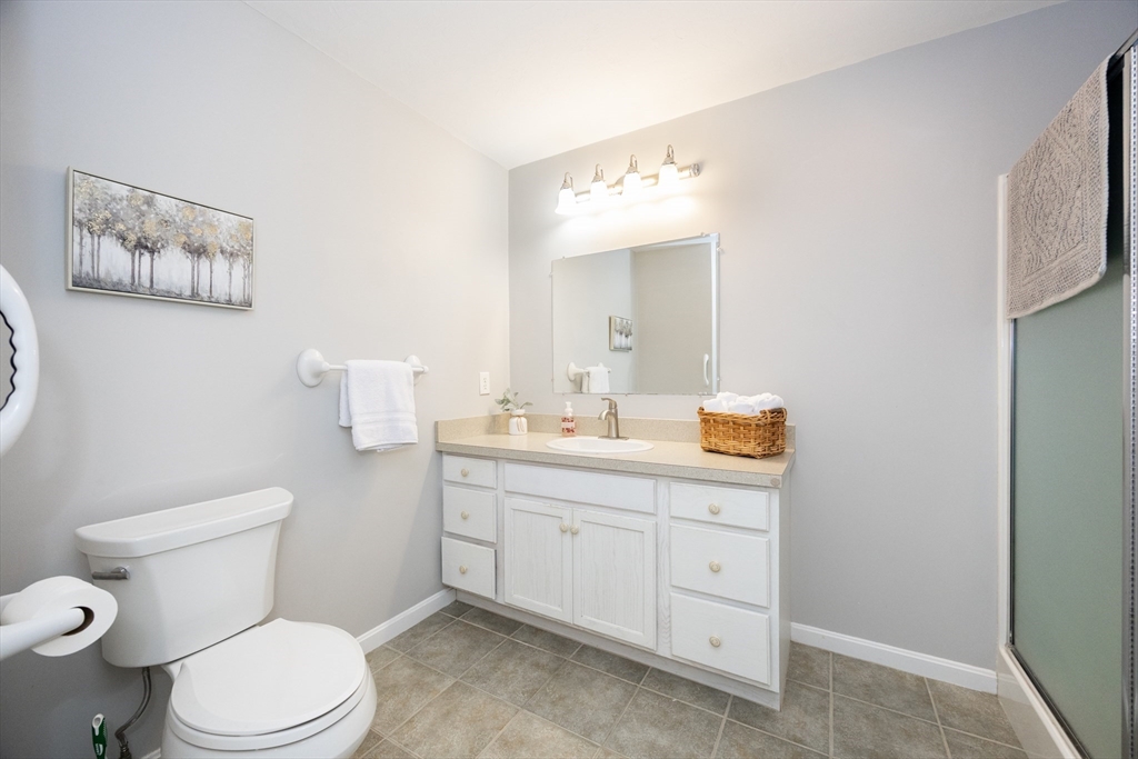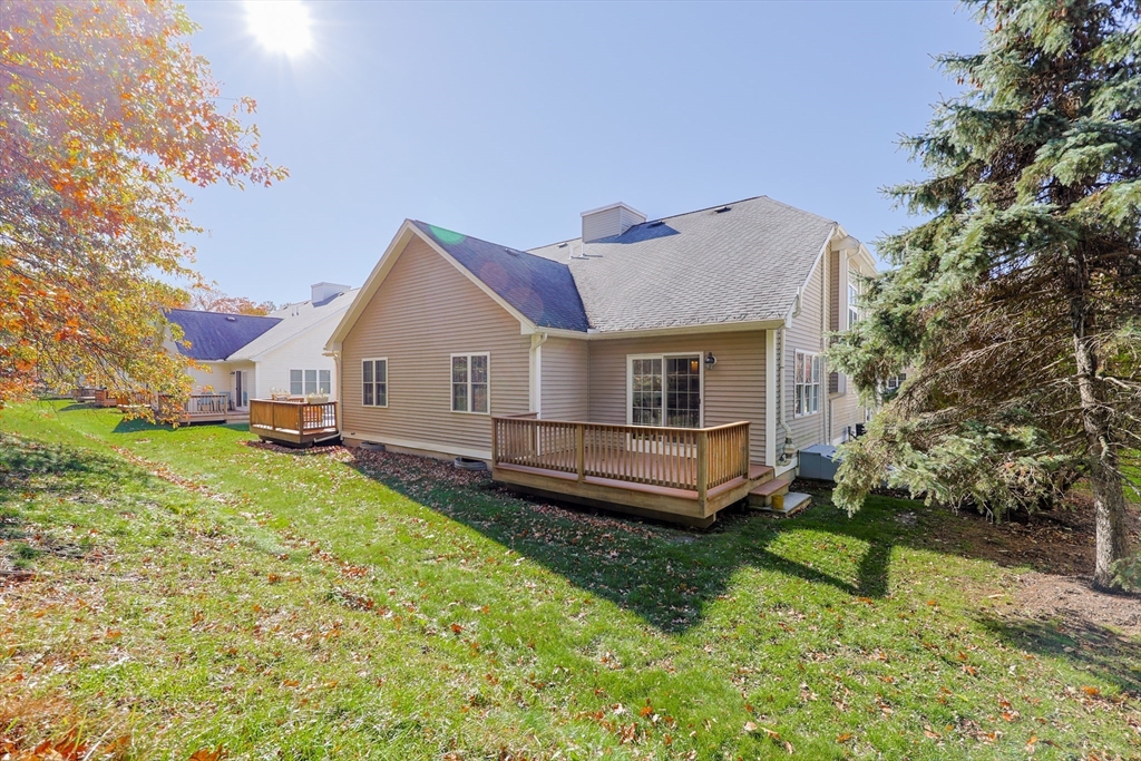 Enjoy the comfort and convenience in this move-in ready condo located in a beautifully maintained 55+ complex. This home features a spacious layout with two bedrooms, two and a half bathrooms, and an attached garage. The desirable first-floor primary suite offers privacy and ease, complete with a full bath and generous closet space.Upstairs, you'll find a second bedroom, full bath and ample storage. Open living areas provide great space for entertaining or relaxing, with abundant streaming natural light. A full basement offers plenty of storage and the deck offers private, wooded views with easy access to the yard. The community presents a quiet, well-kept environment, ideal for low-maintenance living. Thoughtfully designed for easy living, this condo is an excellent choice for those seeking a simpler lifestyle without compromising on quality or space.