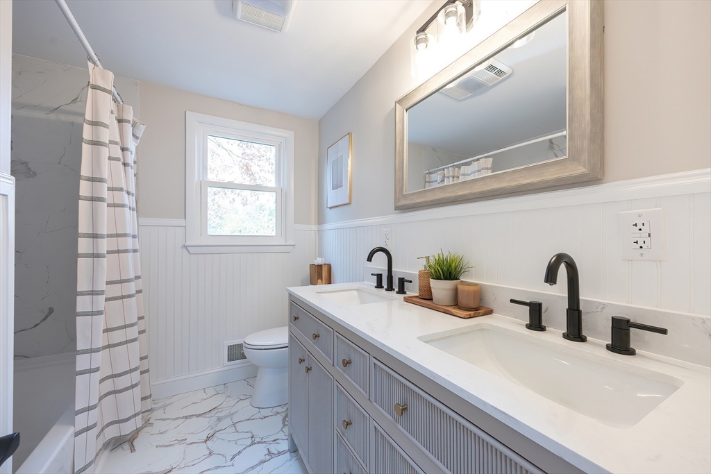 Welcome to 55 Highland Ave! Lots of room here with 4 Beds, 2 Baths, and a Finished Basement! Beautifully updated home featuring a new kitchen complete with quartz counters, brand new stainless appliances, renovated bathrooms, GLEAMING hardwood floors, new windows throughout, the list could go on! Enjoy lots of extra living space in the finished, heated basement. The spacious yard is perfect for entertaining, enjoy the large patio complete with built-in outdoor fireplace. A new septic system is being installed this month. Easy access to Rt 24 and the new T-Station. This house has so much to offer at an incredible price, all that's left to do is move in. Seller paying for a 1 yr home warranty from American Home Shield if you close in 30 days or less.
