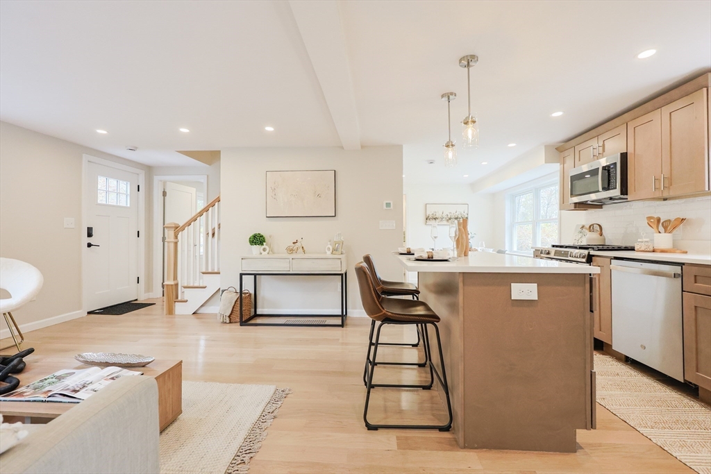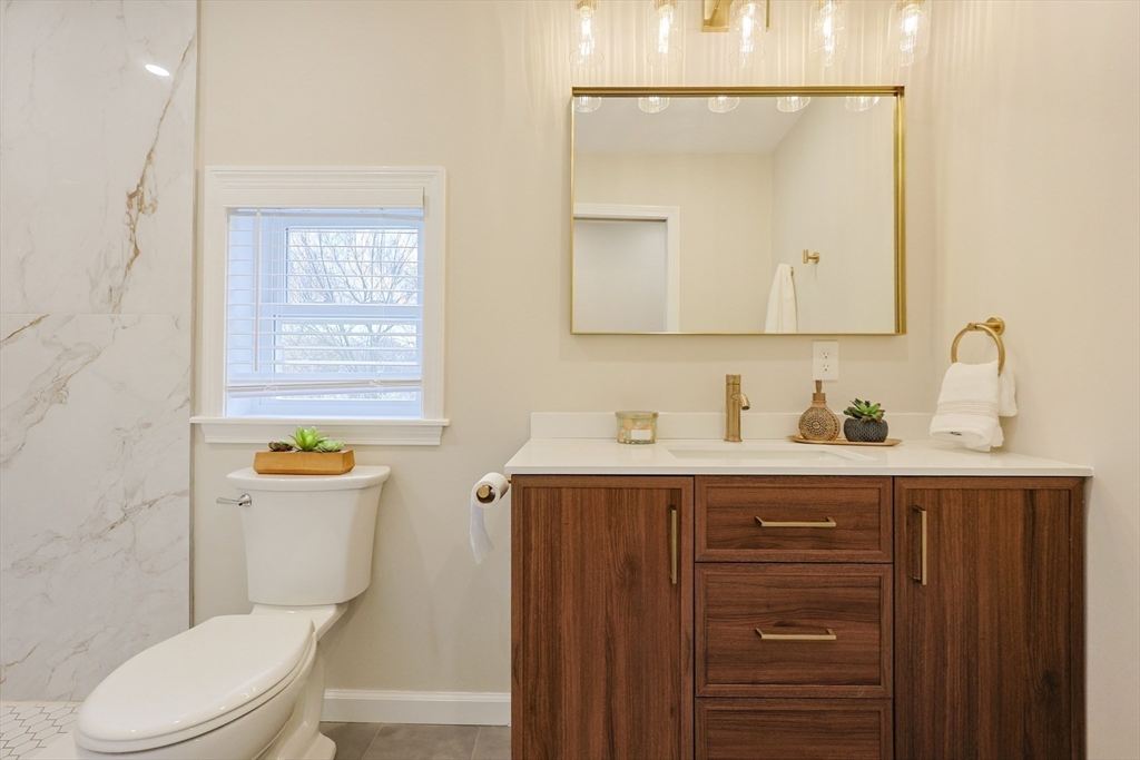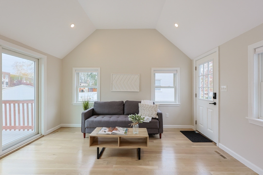 This home has been Renovated Top to Bottom! Featuring 3 Beds, 2 Baths, 1440 sq. ft., much of this home is BRAND NEW, including – Roof, Windows, Siding, Heating & Cooling Systems, Tankless Water Heater, 200 amp Electric Service, Kitchen, Bathrooms, HW Floors, Recessed Lighting, Gutters. Bright, Open Concept Kitchen/Living Room and Designated Dining Space. Gorgeous Kitchen w/Island, Stainless Steel Appliances, Gas Cooking, Quartz Countertops, Subway Backsplash. Beautifully constructed bathrooms. Sunroom with Vaulted Ceilings offers an additional living space. Sizable 2nd floor Bedrooms, both with Walk-in Closets. Deck overlooking Fenced-in Backyard perfect for entertaining including. 660 sq ft of basement space for storage. Danvers Municipal Electric resulting in cheaper utilities. Minutes to shopping, restaurants, schools and major highway. Nothing to do but move in before the Holidays!