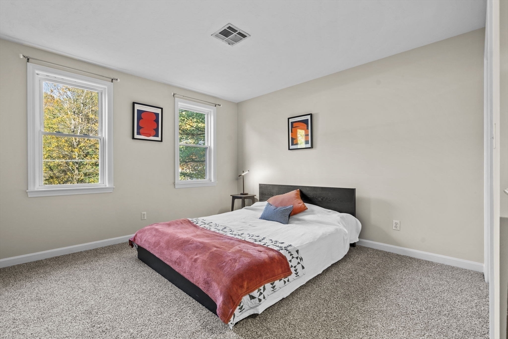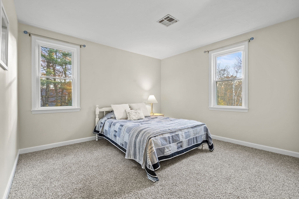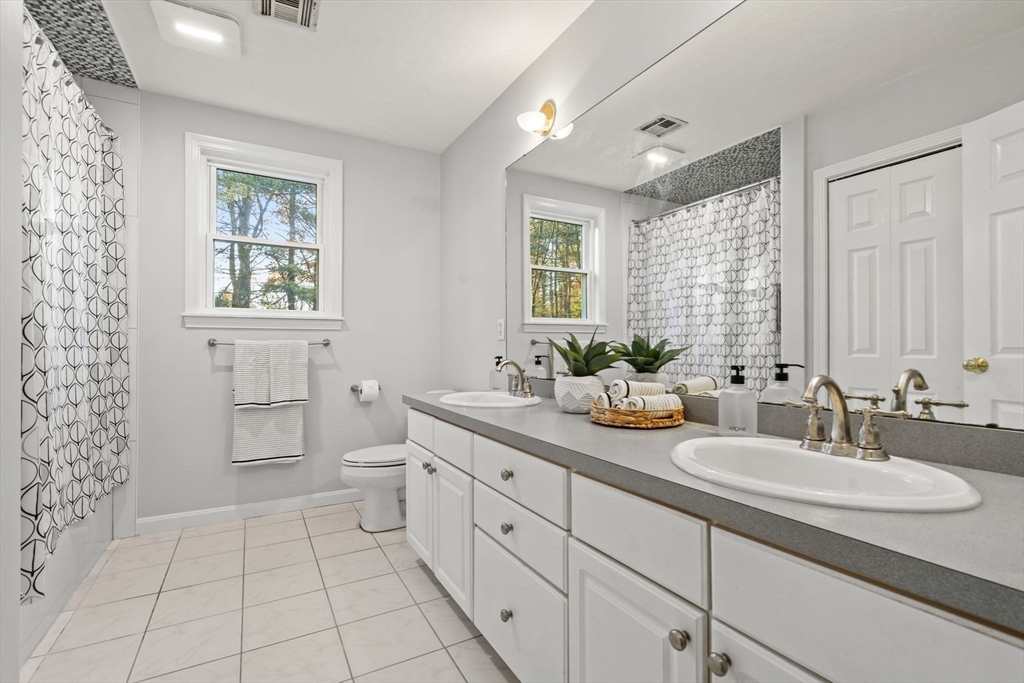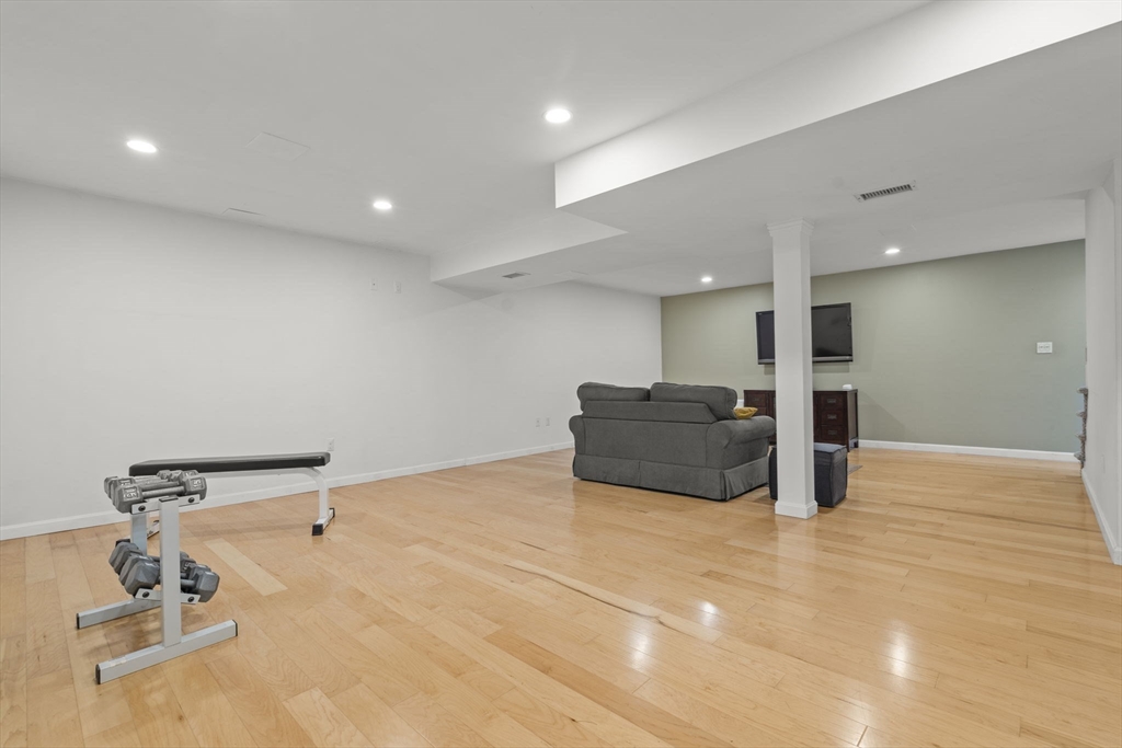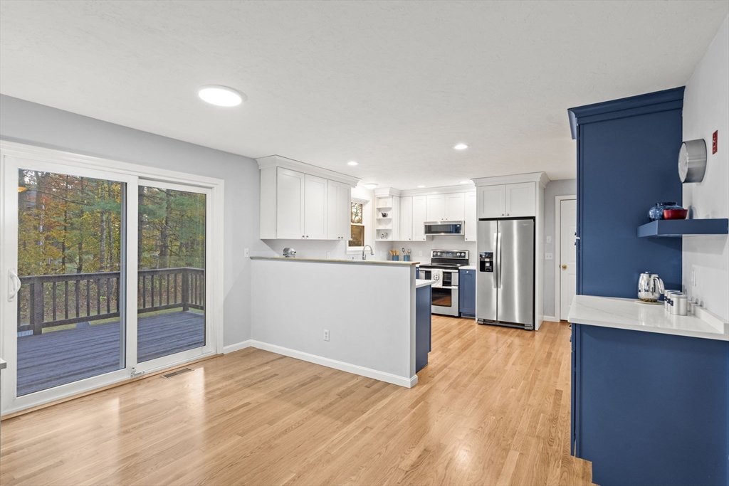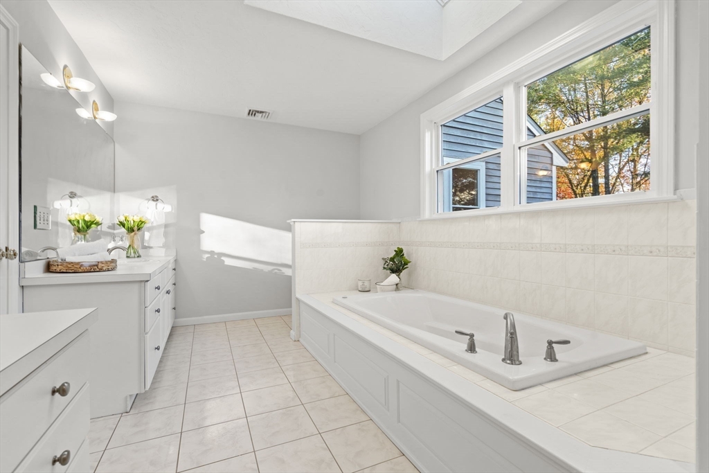 Exceptional and inviting, this beautifully appointed home offers gracious living spaces and upgraded amenities on a generous .92 acre lot. Sun filled interiors feature refinished hardwood floors and new paint throughout. Installed in 2025, the brand new kitchen features gorgeous quartzite counters, all new cabinetry and new stainless steel appliances. Open and airy, the kitchen connects directly with the family room featuring a brick fireplace and hearth as its focal point. The front dining room provides generous room for entertaining and the living room, currently used as a home office, has a wonderful set of French doors that open directly into the family room. Upstairs, the luxurious primary suite includes a spa like bath, amazing closet space and vaulted ceiling. Three additional bedrooms and a full bath round out the second level. All four bedrooms just had new carpets installed. The finished basement has room for both hosting movie nights and a home gym. Attached 2 car garage.