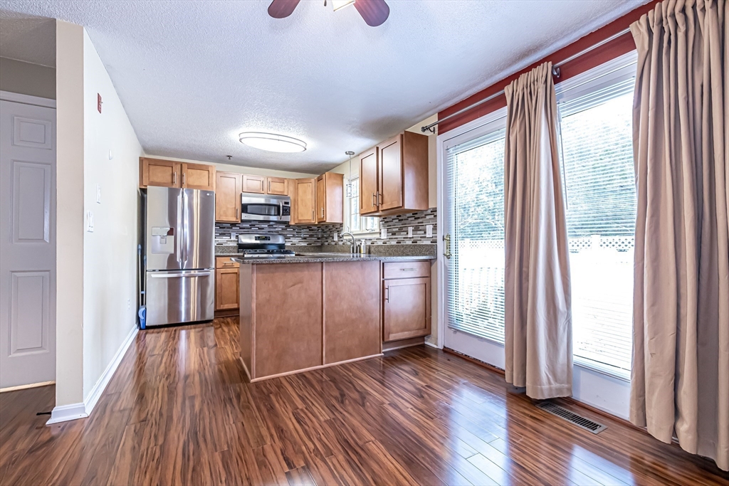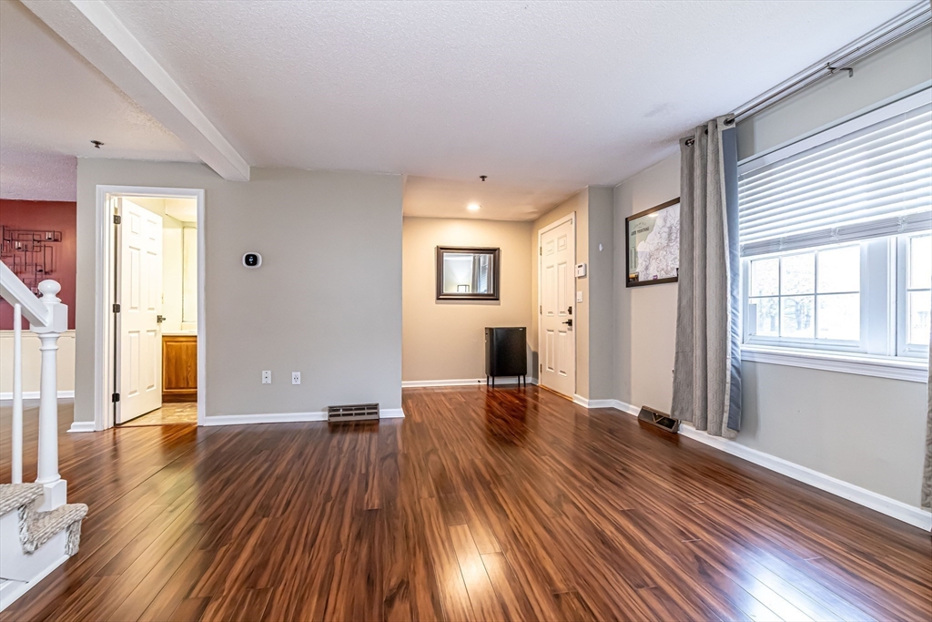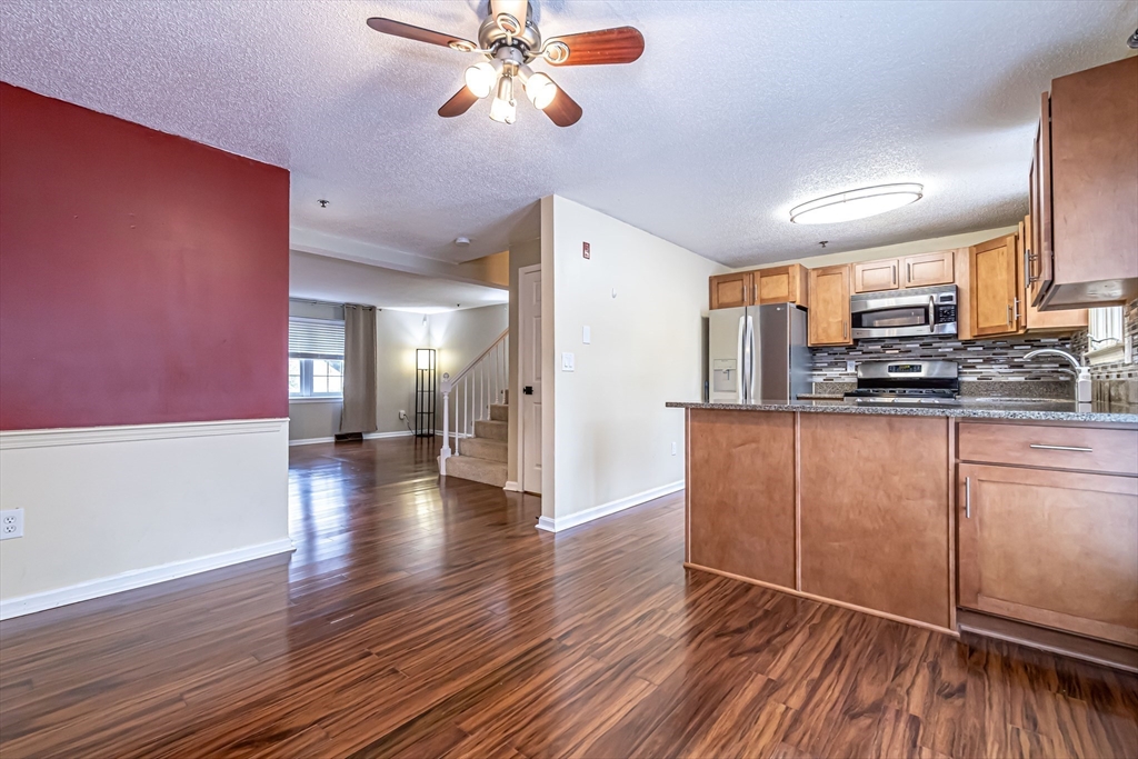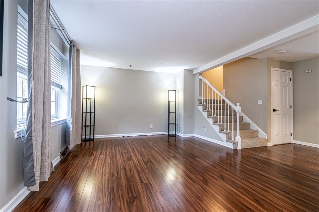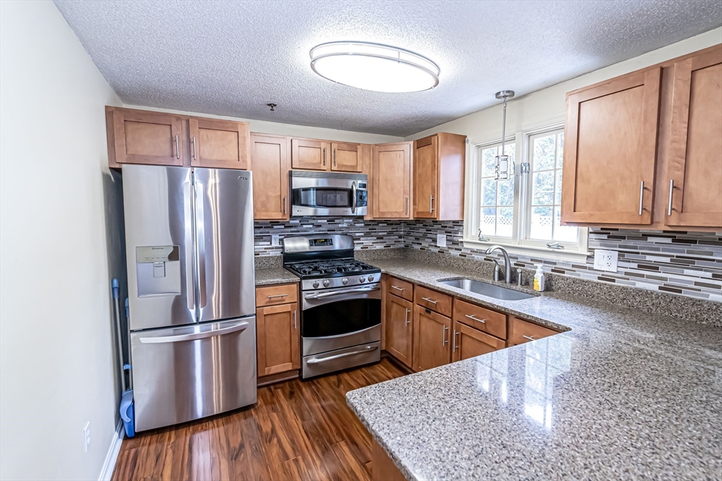 WELCOME HOME! You do not want to miss this attractive two-bedroom townhome located in a desirable Dracut location. Relax on your large deck from the dining room slider to your own balcony, ideal for enjoying the outdoors. This home also offers a fully gas-applianced kitchen with updated quartz countertops and oak cabinets, two generously sized bedrooms with a large loft area in the main bedroom that can be an office or workout room, 1.5 baths, and Lots of closet space throughout. If that is not enough, you also have central A/C and bamboo flooring on the first floor and hardwood in the primary bedroom. A bonus room in the lower level. All of this, located in a well-kept community, is just waiting for you. Open House on Sat.& Sun. 11/8-9 12-2 pm