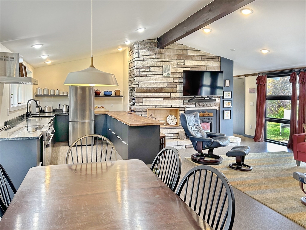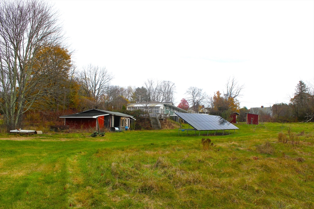 Surrounded by nature, this California ranch features many 2020 improvements including three bedroom septic system, 50 year roof, kitchen, flooring, shower stall bath plus seller-owned solar panels with backup battery that provides low cost living. The home is flooded with light throughout the day via oversized windows and features an open flow living/dining/kitchen with pellet stove and full bath w/ shower & radiant heat. The mudroom/laundry area is accessible to garage and back yard. Three bedrooms and another full bath on the other side of the living space with access to the greenhouse. Oversized deck spans the entire south-facing back of the home. Oversized one car garage and walk out basement accessible from outside. Barn and two other shed/outbuildings provide extra storage. Frontage on Daniels, gas & sewer in street...potential for development. Buyers to do due diligence. Open house 11am to 1pm Saturday or call for private showing.