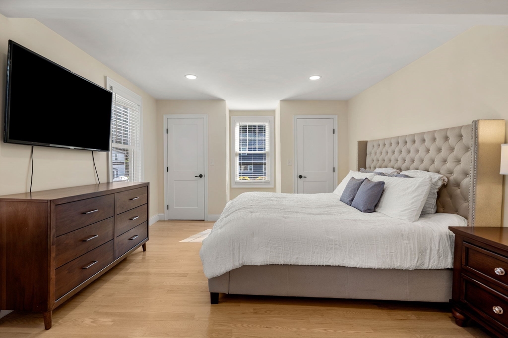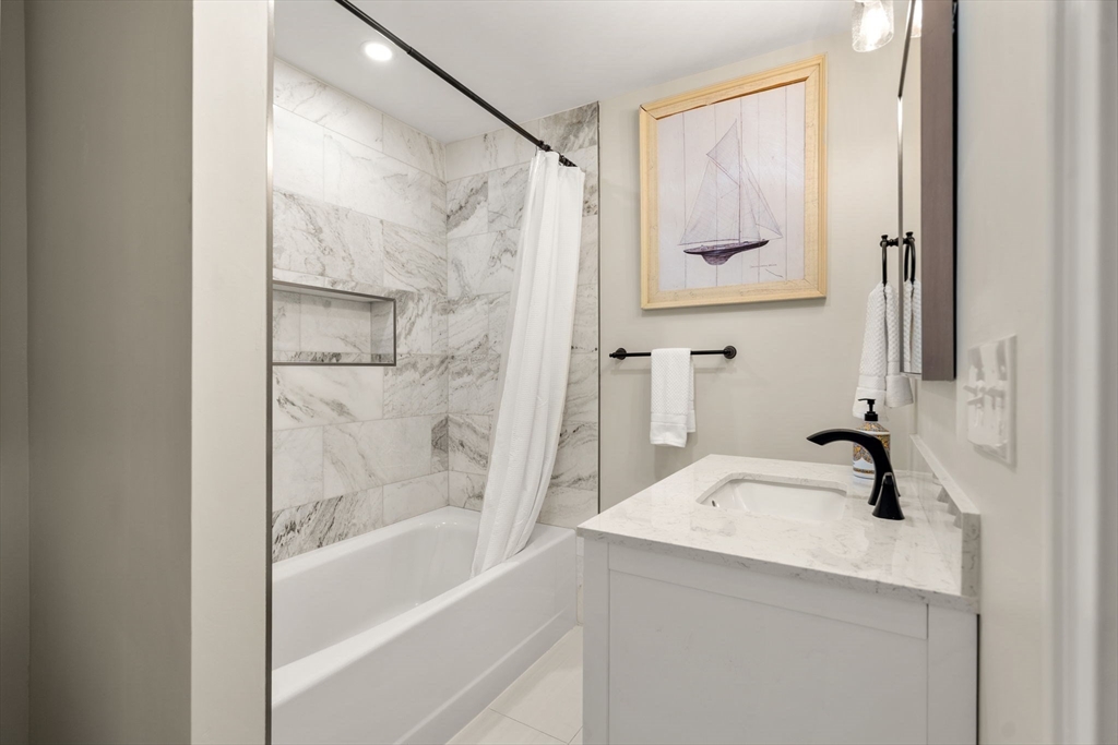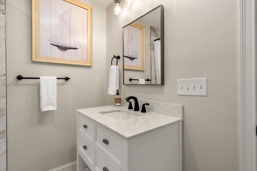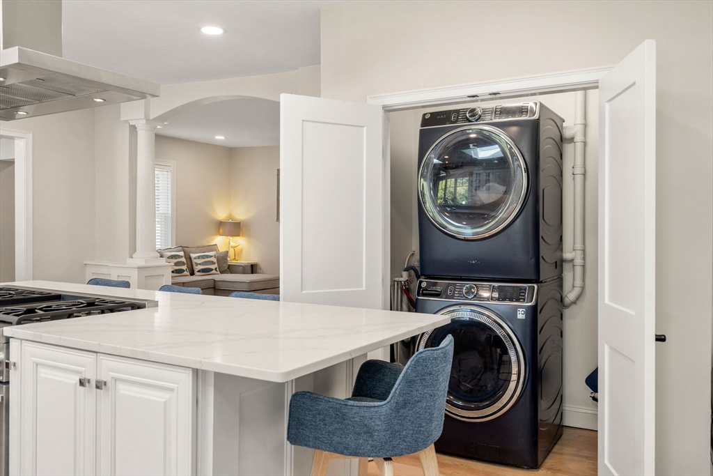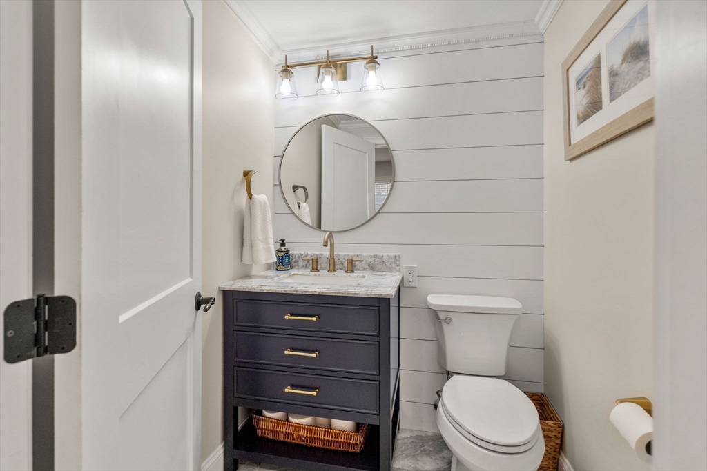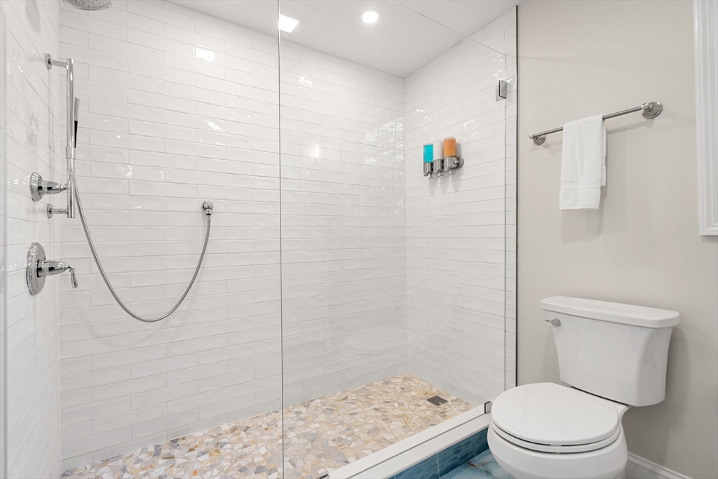 Exquisitely reimagined in a 2024 gut renovation, this 4-bedroom, 2.5-bath townhome offers the perfect blend of refined luxury & coastal charm. The open-concept main level is anchored by a chef’s kitchen with new Thermador & Viking appliances, oversized quartz island & custom cabinetry, flowing seamlessly into sun-drenched living & dining areas with skylights, recessed lighting & a gas fireplace. French doors open to an expansive 42' deck with sweeping Merrimack River views, while over half an acre of manicured grounds provide a fully fenced yard, newly installed stone patio—ideal for family fun & entertaining. The private primary suite boasts dual closets & a spa-inspired bath. Every element has been renewed, from insulation, electrical to high efficiency heating/cool systems, ensuring turnkey living. No condo fees, 2+ driveway parking & just minutes to downtown Newburyport’s waterfront, shops, and dining, this rare offering defines coastal elegance & convenience.