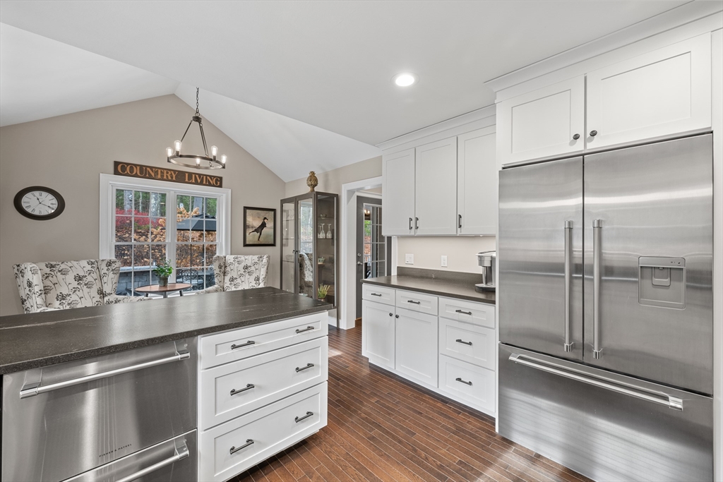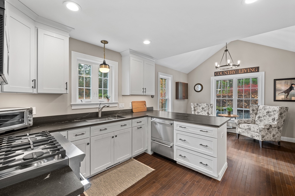 If you’re looking to upgrade to less work & more living, welcome home to The Village at Old Mill, a sought-after 55+ community! This newly built, single-level home features 2 bedrooms, 2 full baths & thoughtful upgrades. Inside you'll find gleaming hardwood floors (no carpet here!) & soaring ceilings. The inviting foyer leads to a guest room, full bath with granite counters & walk-in shower, and a charming dining room with wainscoting & crown molding. The kitchen is a showstopper, complete with honed granite countertops, Fisher & Paykel appliances & an extended peninsula perfect for gathering. The living room centers around a cozy gas fireplace & opens to a covered Trex deck & custom stone patio with built-in bar, an entertainer’s dream! The primary suite offers coffered ceilings, a walk-in closet & a spa-like bath with double vanity, tiled shower & soaking tub. With central air, vac, generator & a 2-car garage, plus a low HOA where you own the land, it's the perfect place to relax!