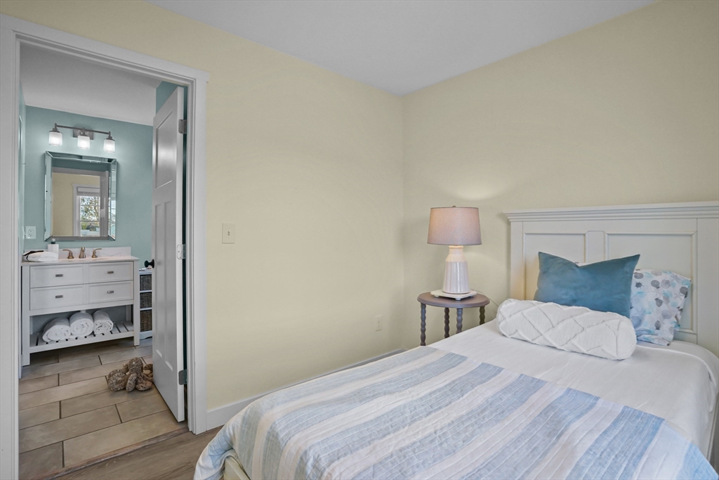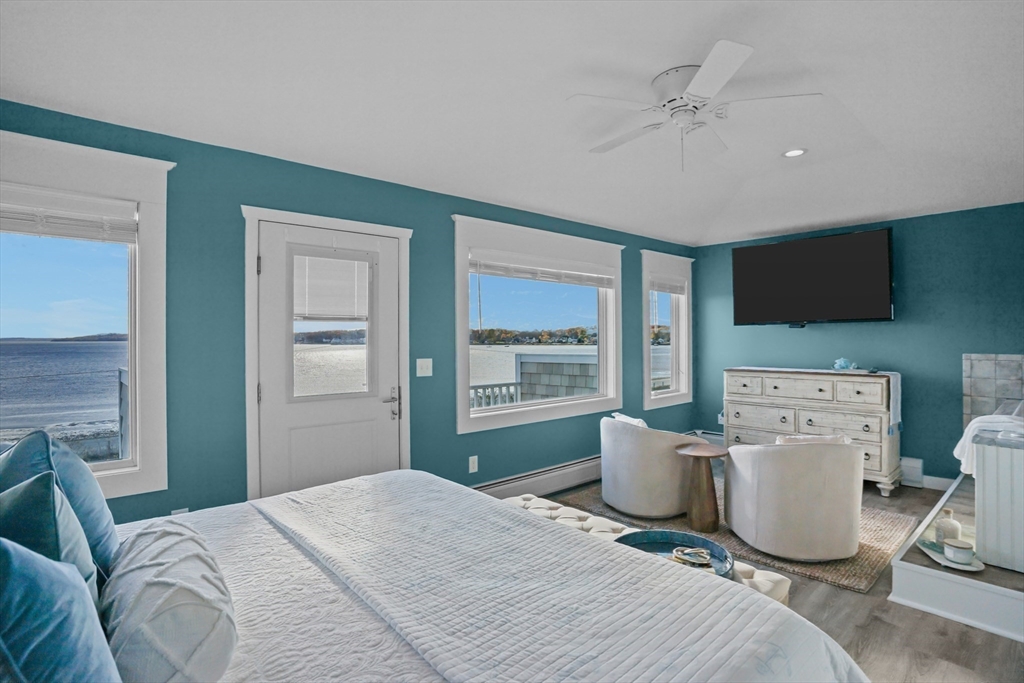 Built in 2017, this modern coastal retreat captures breathtaking panoramic views of Mt. Hope Bay and offers direct beach access through the private town beach. Designed with refined coastal living in mind, the open-concept floor plan seamlessly blends casual elegance with comfort—ideal for entertaining or quiet relaxation. The gourmet kitchen features granite countertops, bar seating, and high-end finishes, opening to a light-filled living area anchored by a gas fireplace. The primary suite impresses with cathedral ceilings, a private balcony overlooking the water, and a spa-inspired bath complete with an air-jetted tub. Additional highlights include ductless heating and cooling, Andersen windows, hurricane-rated storm doors, and a 50-year architectural roof. Owned solar panels enhance efficiency and sustainability. Combining timeless coastal style with modern amenities, this exceptional waterfront home offers the ultimate in relaxed luxury living.**NO FLOOD INSURANCE**