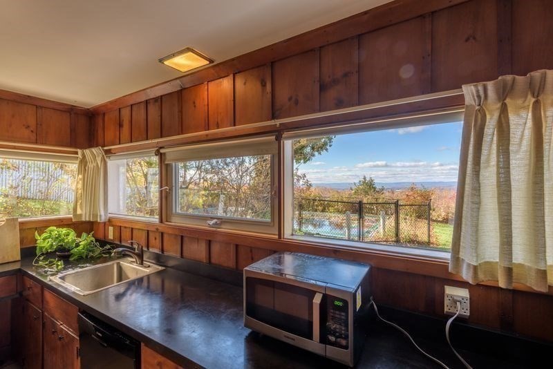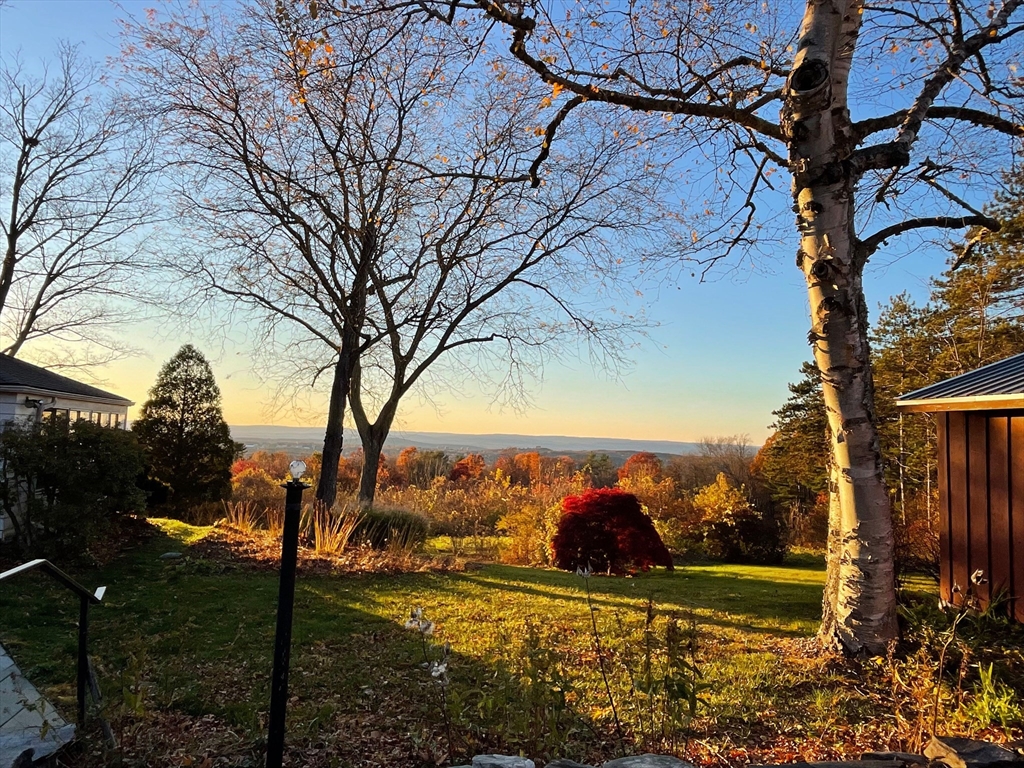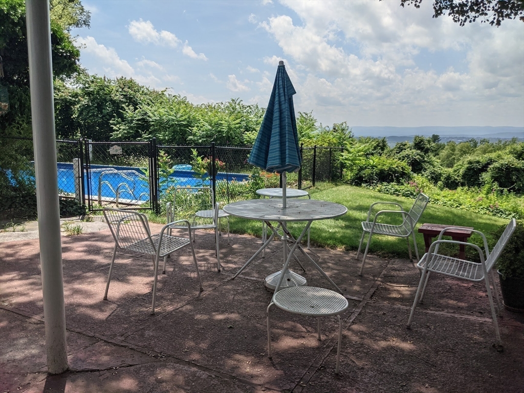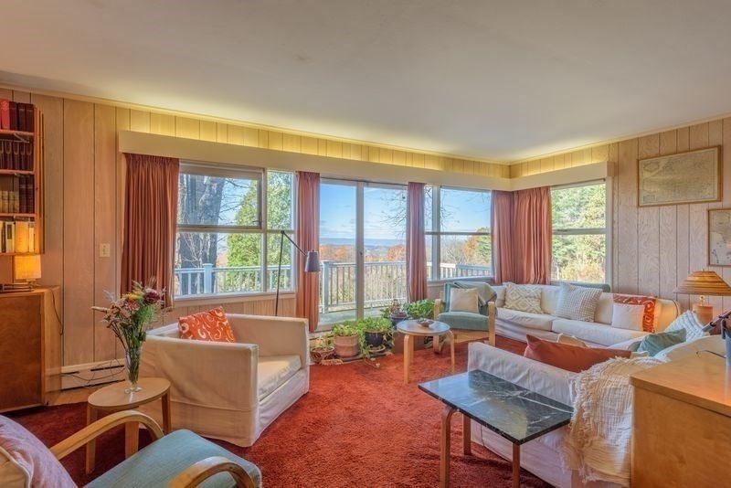 Set atop a gently rolling 5.84-acre parcel, this exceptional 1951 mid-century modern ranch offers panoramic distant views that stretch across the landscape. This home has been lovingly cared for by the same family for 65 years. Inside you will find a large communal living room, sunroom, 2 bedrooms, office, 2 full baths with expansive windows that fill the home with natural light. The daylight lower level offers a kitchen, dining/entertainment area, den, bedroom, full bath with direct access to the patio and pool. Located within easy reach of colleges, downtown Amherst, trails, and area amenities, the home strikes a rare balance: peaceful seclusion with convenient access. If you’ve been searching for timeless mid century character, generous land, and a setting that invites you to pause and take in the distant panorama, this is your opportunity. Offering serenity and endless potential—ready for you to bring your own personal expression and individuality to this one-of-a-kind home