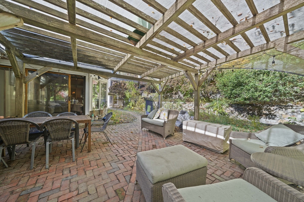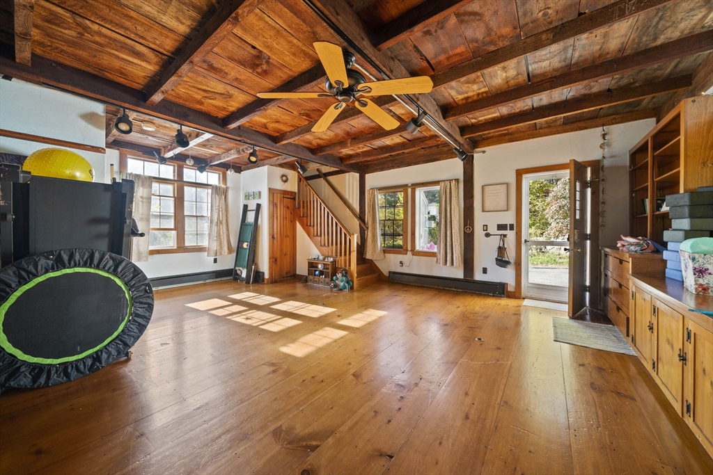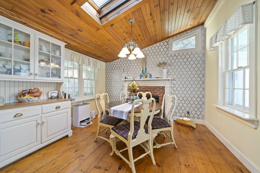 Come home to this spacious, sun-drenched four-bedroom New England farmhouse, where updated living meets timeless charm. From the moment you step inside, you'll appreciate the custom built-ins and the chef-ready kitchen with granite countertops, a center island, and a Sub-Zero appliance. Whether you're relaxing in the huge family room or soaking up the light in the cheery sunroom, comfort is key. Practical features include a first-floor bedroom/full bath and laundry. Need extra space? The huge heated studio above the garage is perfect for a gym, office, or entertaining, featuring its own wet bar! Outside, the setting is beautiful, featuring gorgeous, mature gardens and custom stone patios. This beloved home is truly move-in ready with a new four-bedroom septic system.