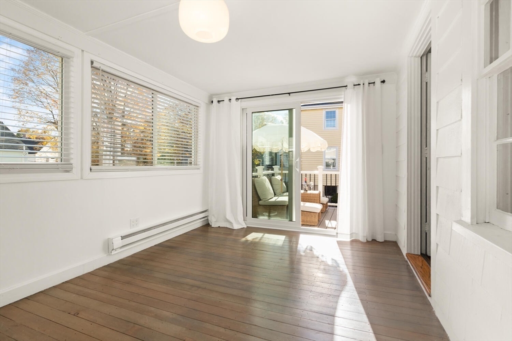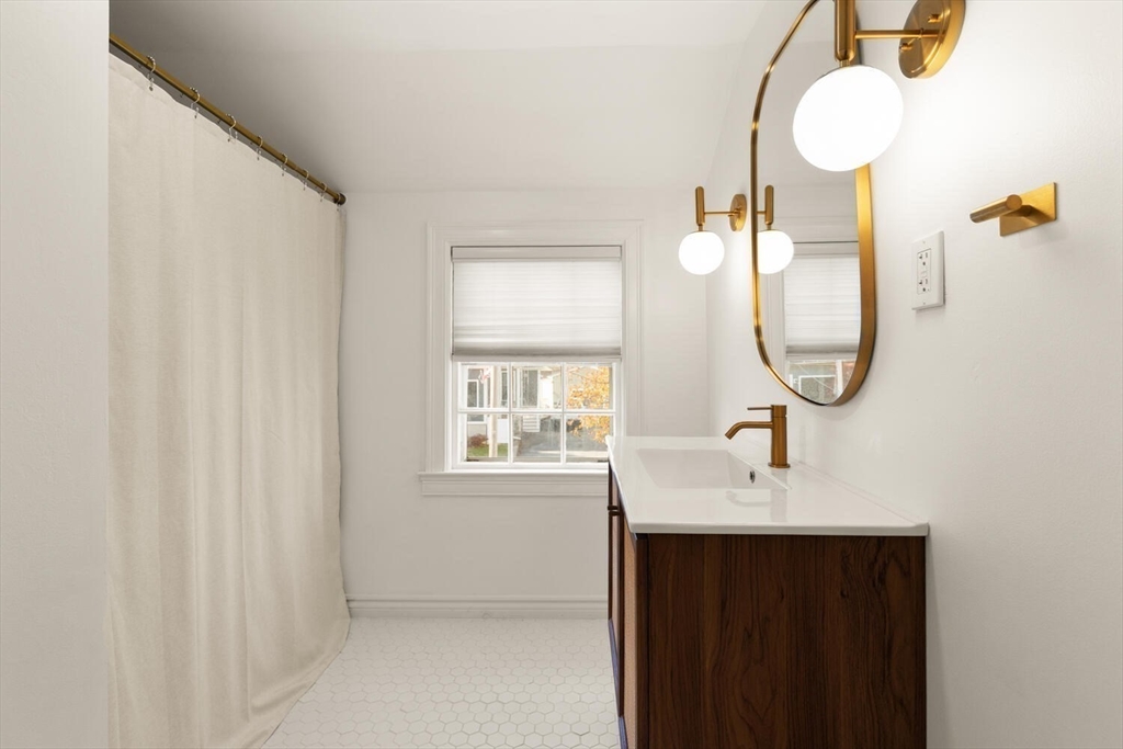 Move right into this sun drenched colonial, on a coveted street,where homes rarely come on the market. Newer Kitchen with white cabinets, ss appliances, Quartzite countertops, and new lighting. Living room opens to Dining room with door to Sun room which was fully rebuilt: structure replaced, windows installed, sliding glass door added. Brand new roof replaced (Dec 2023)Three spacious bedrooms on the 2nd floor and newly remodeled bathroom (2024) All Hardwood floors throughout and refinished in 2019. Central air conditioning installed (2021), 200-amp electric service (2023), New deck with electrical service installed (2024) (200 amp electrical upgrade) Heating and full insulation added to porch (Nov 2024) Brand new water heater. Walk out basement has toilet and sink stall.One car garage under. Fabulous and convenient location, close to town center, commuter rail, theatre, many diverse restaurants, and Norwood's vibrant center.