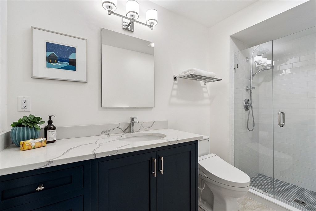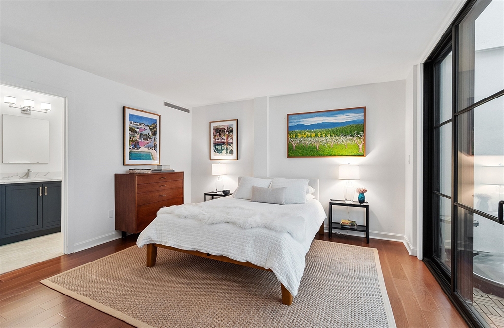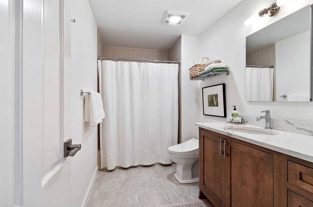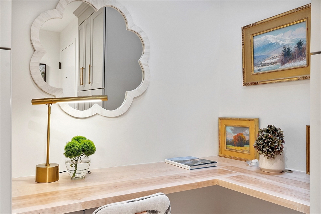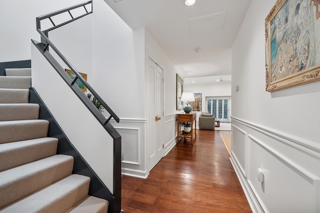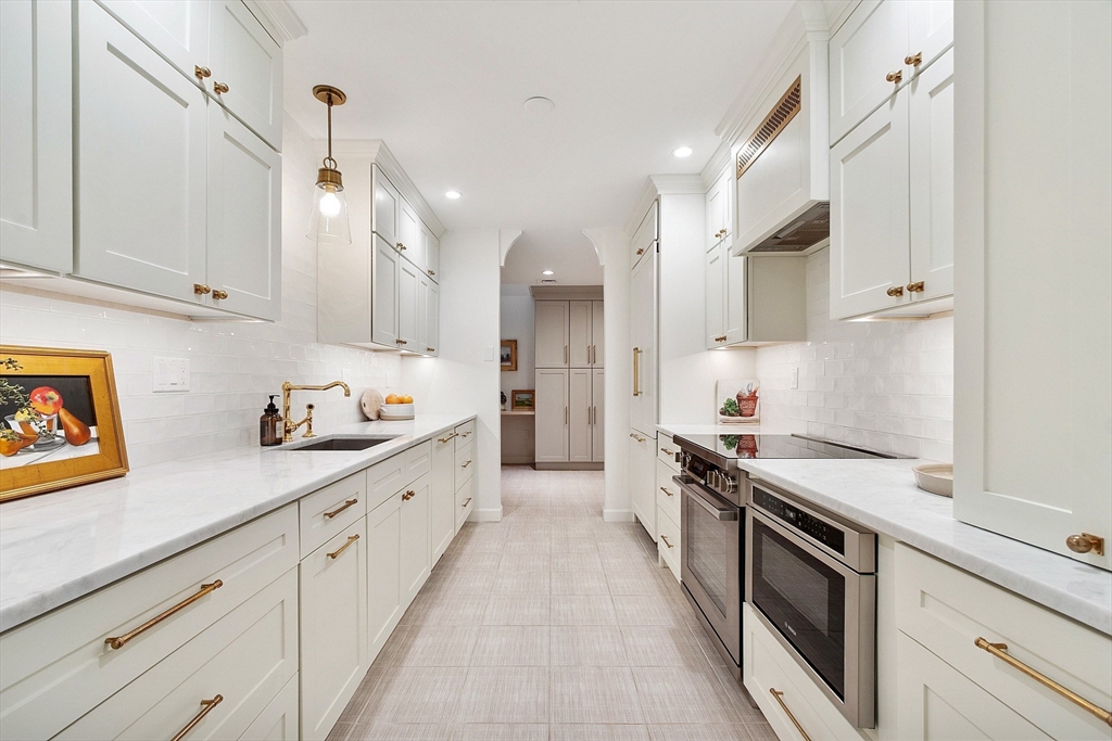 This sophisticated, completely renovated condo lives like a single family home, with the ease of condo living at sought after Milldam Square in the heart of vibrant Concord Center. The gorgeous all new kitchen features Bosch appliances, high-end brass hardware, designer tile flooring and quartzite counters. The welcoming, thoughtfully designed entry provides mudroom space, custom cabinetry for pantry/office storage, a clever built-in desk, full size wine fridge and powder room. Relax, dine and entertain in the spacious living area featuring high ceilings, custom built-ins and oversized French doors opening to the intimate enclosed patio. Elegant wainscoting, new HW floors throughout, updated light fixtures, new recessed lighting and storage galore. Upstairs find two generous BRs each with their own renovated full bath, washer/dryer and indoor/outdoor atrium. Enjoy simplified, Concord Ctr living from this gracious, totally updated residence, one of the largest units at Milldam Square.