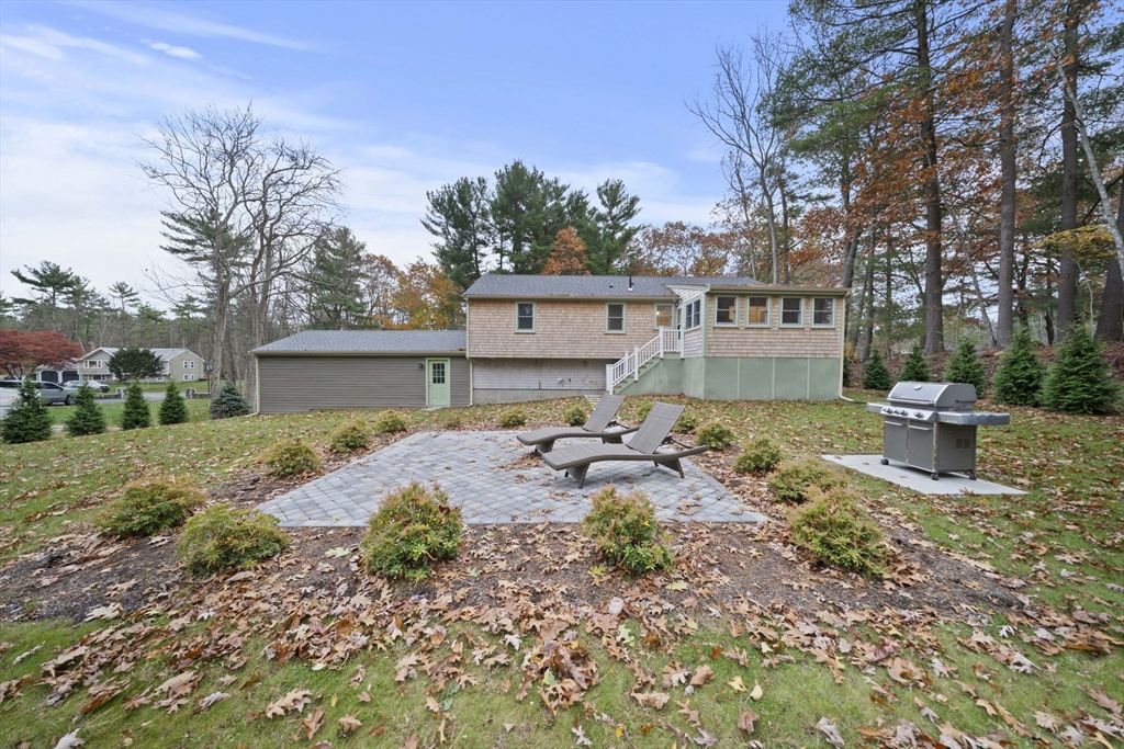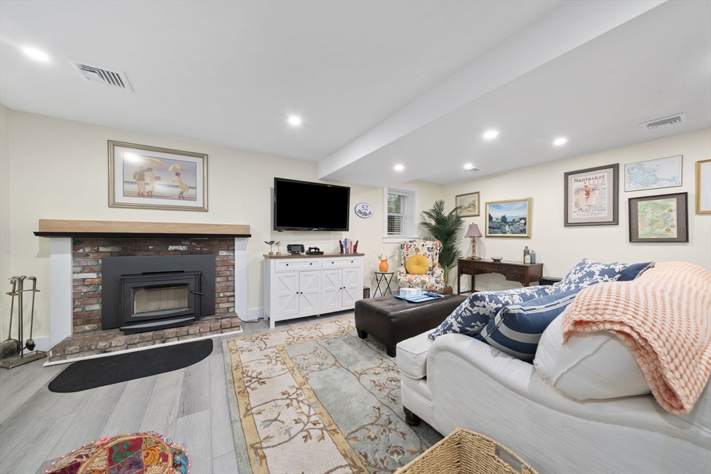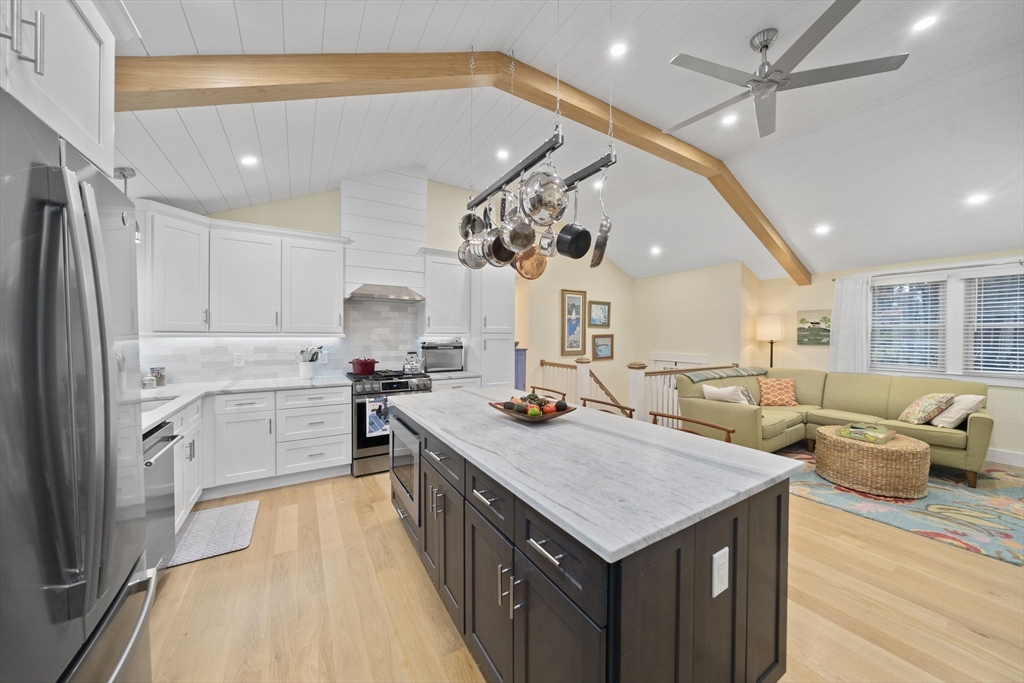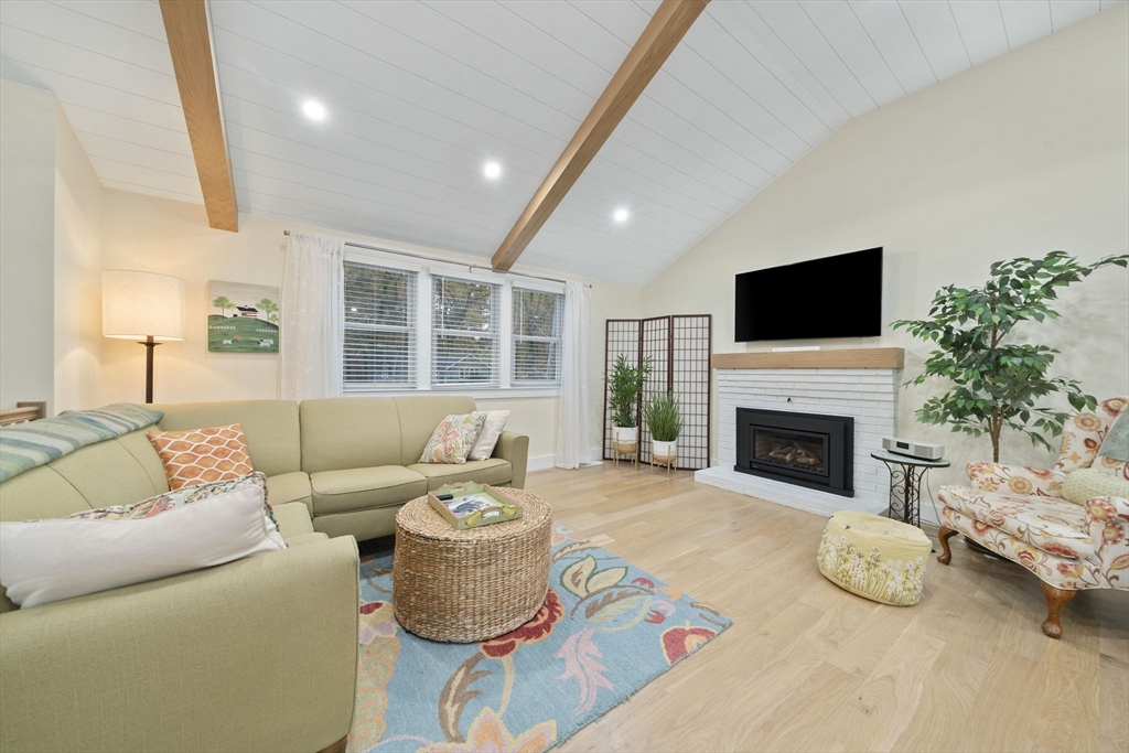 Rare opportunity to own a completely renovated home set on a beautifully landscaped level lot in a sought-after Hanover neighborhood. This energy-efficient three bedroom, two bath offers a bright, open layout with cathedral ceilings, hardwood floors, recessed lighting and exceptional craftsmanship throughout. The sun-filled living room with a new gas fireplace (October, 2025) opens to a designer kitchen with white shaker cabinets, quartzite counters, tiled backsplash, center island, and stainless appliances. A lovely sunroom overlooks the private yard with all-new hardscape and softscape landscaping. The finished lower level adds a spacious family room, full modern bath and laundry. The entire home was renovated in 2024/2025! New roof, septic, heating/cooling, and a two-car garage was added. Not your average split, you have to see it to believe it. Convenient to shopping, restaurants, and highway access. An exceptional, move-in-ready home!