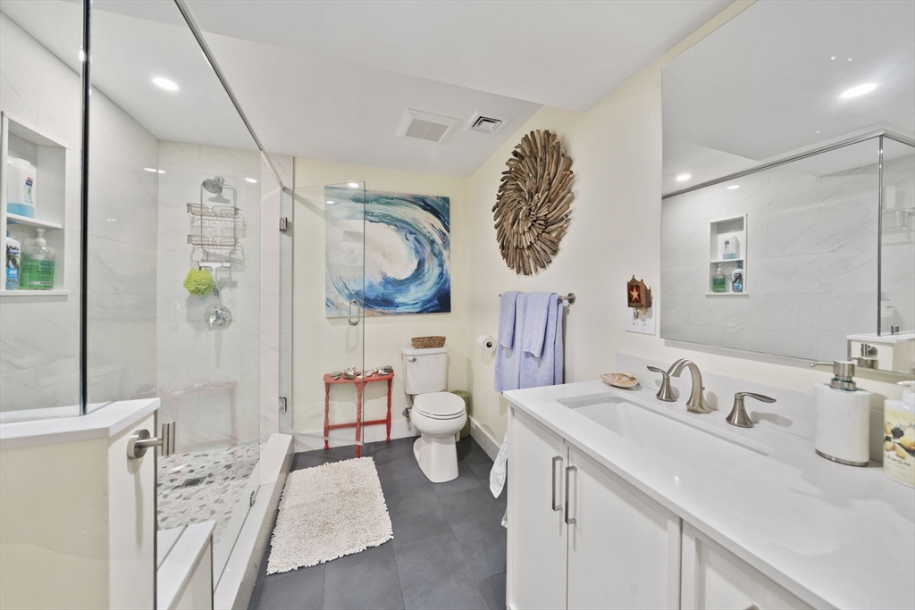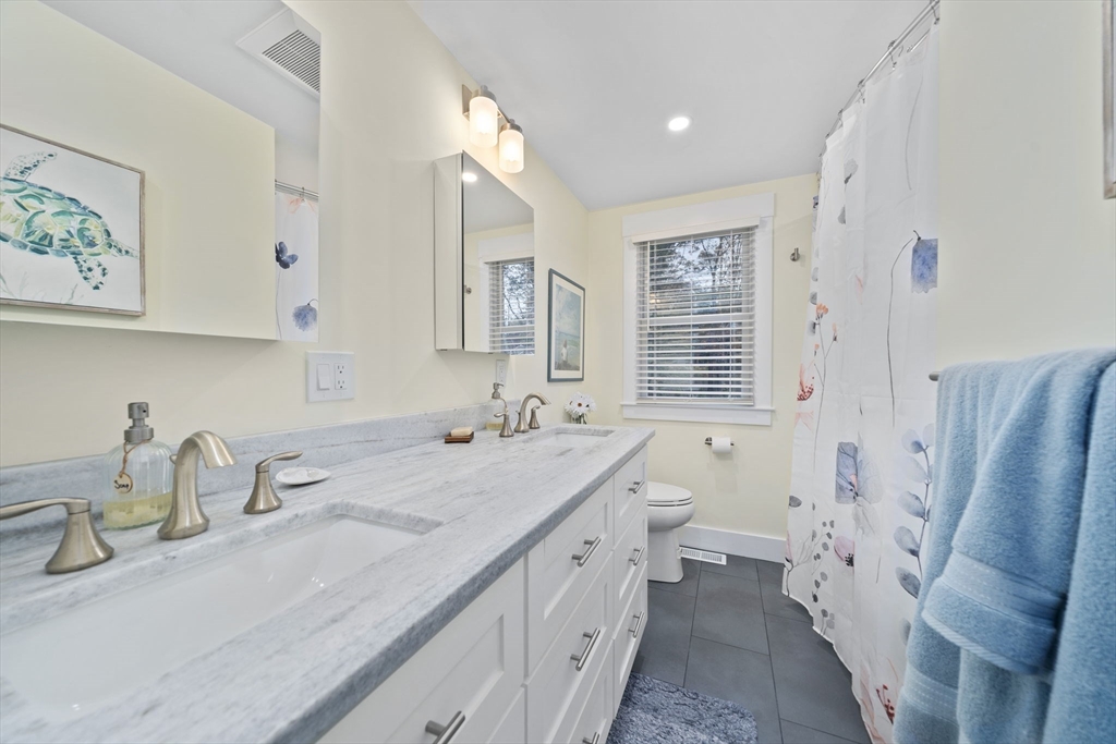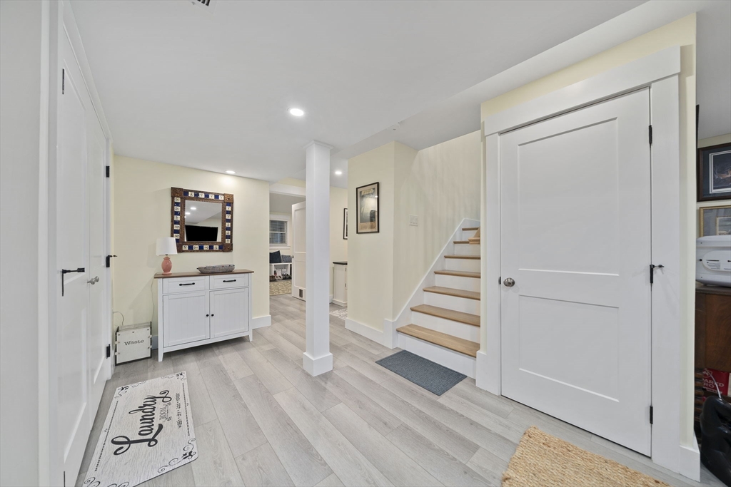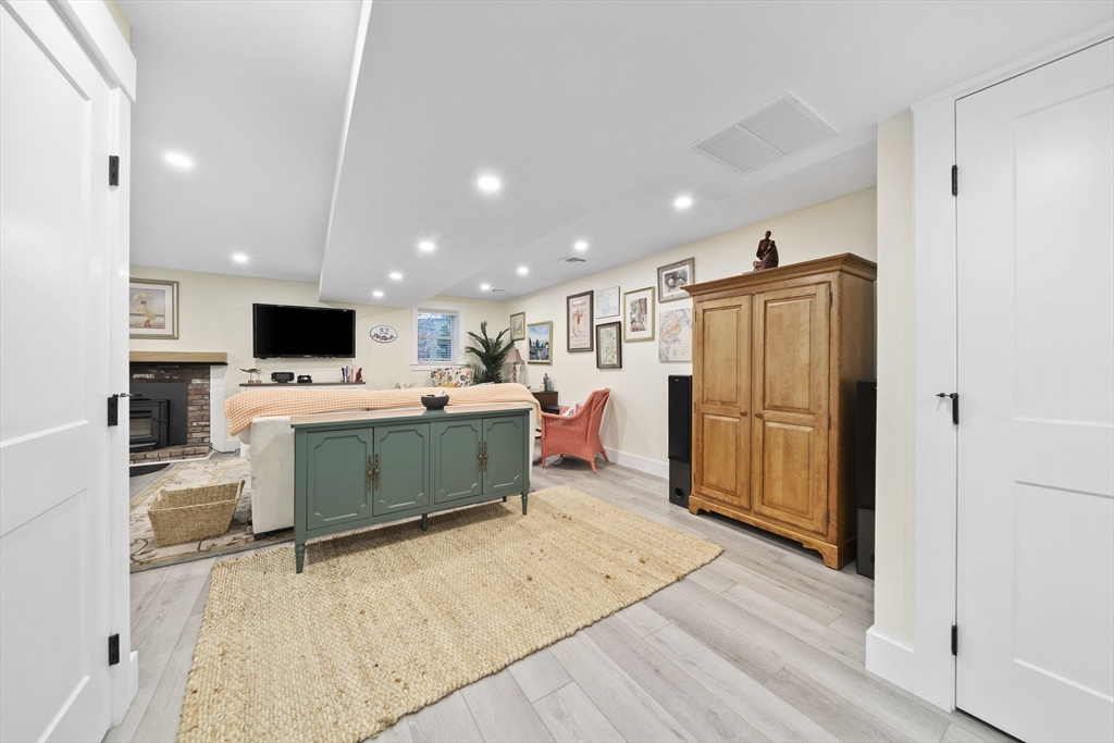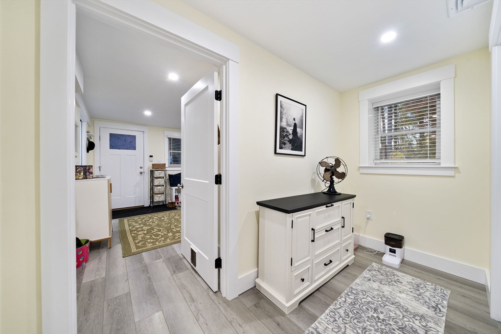Rare opportunity to own a completely renovated home set on a beautifully landscaped level lot in a sought-after Hanover neighborhood. This energy-efficient three bedroom, two bath offers a bright, open layout with cathedral ceilings, hardwood floors, recessed lighting and exceptional craftsmanship throughout. The sun-filled living room with a new gas fireplace (October, 2025) opens to a designer kitchen with white shaker cabinets, quartzite counters, tiled backsplash, center island, and stainless appliances. A lovely sunroom overlooks the private yard with all-new hardscape and softscape landscaping. The finished lower level adds a spacious family room, full modern bath and laundry. The entire home was renovated in 2024/2025! New roof, septic, heating/cooling, and a two-car garage was added. Not your average split, you have to see it to believe it. Convenient to shopping, restaurants, and highway access. An exceptional, move-in-ready home!