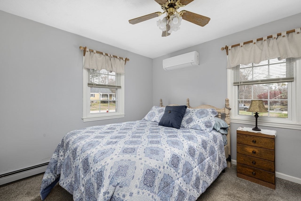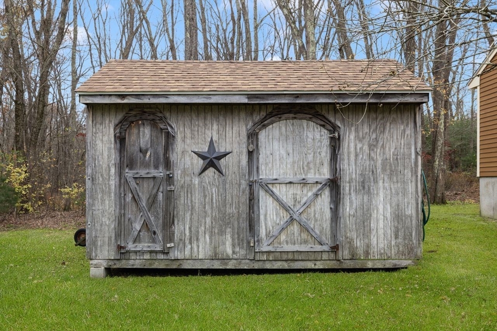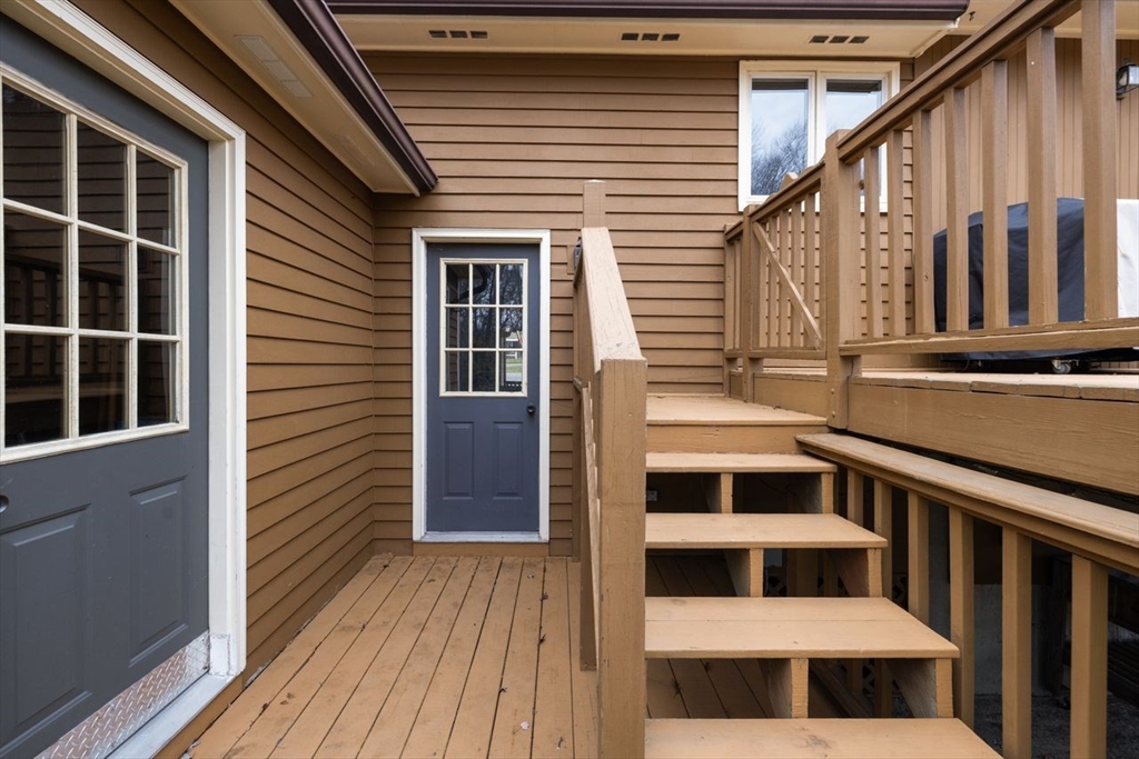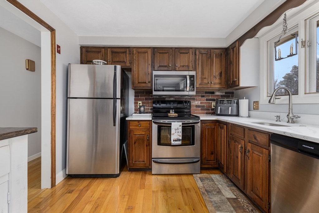 Pretty as a picture Ranch perfectly situated on just over a half-acre with Curb appeal & beautiful front porch. New Roof 2025. Open concept Kitchen/ dining area features Quartz countertops, hardwood floors , Stainless Steel appliances & access to a large deck perfect for entertaining. Updated replacement windows. Fresh paint throughout the first level. newly installed hardwoods in living room & Hall and brand-new carpets in all 3 bedrooms. Updated Bath with new flooring, handmade custom oak wood work & new vanity. Remodeled Mudroom / office area with 13ft ceilings, custom oak stairs, luxury Iron Balusters & luxury vinyl plank flooring. Finished Walk-Out lower level has family room with custom cabinetry and wood stove has endless possibilities for additional living space. Spacious two-car garage with a separate workshop area .Large Barn style shed . Stone Fire pit , Three Efficient Mini split AC & heat systems and oil heat. 9.3 m to Franklin T, Move in ready beautiful home