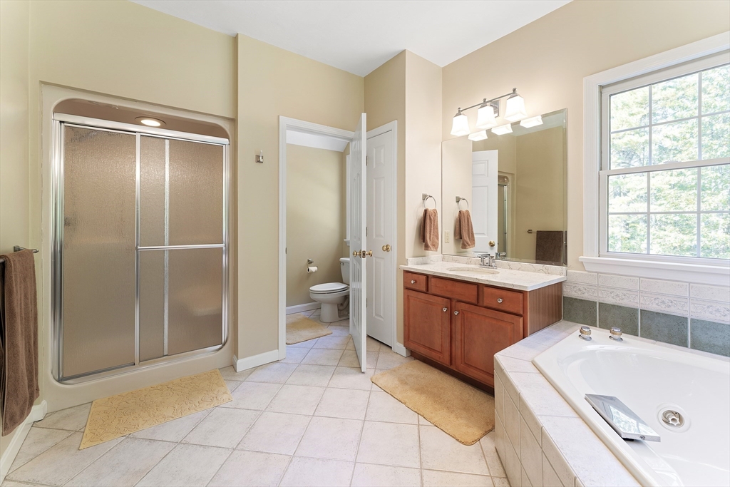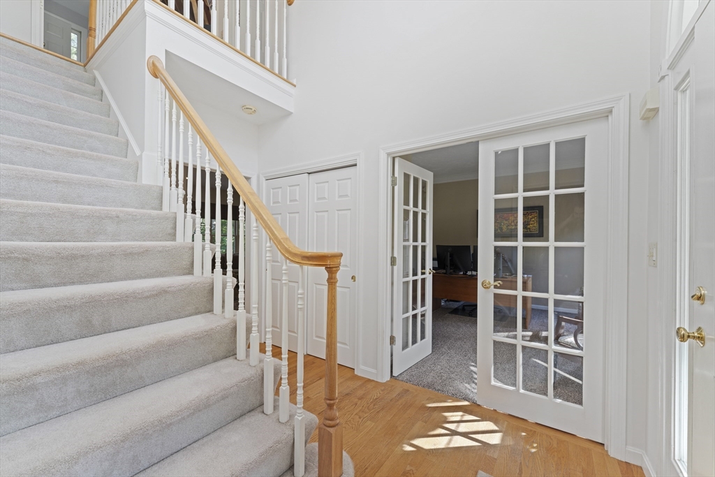 This stunning custom designed Colonial, with farmer's porch & in-ground pool, is located in highly sought after Rosewood Estates. With three finished levels, this home blends elegance with comfort & entertaining in a beautifully designed floor plan. Entering the 2-story foyer, you'll find a private home office & coat closet. There's a spacious living room with recessed lighting & fireplace, dining room, half bath, laundry room with sink and mudroom. The kitchen has huge pantry, island & breakfast nook. The 2nd floor has sizable bedrooms with large closets, an updated full bath with granite counters, & a luxurious primary suite with a sitting area, private office, 2 walk-in closets, & spa-like bath with double vanity, whirlpool tub, & shower. The lower level offers a full bath, wet bar, recessed lighting, & walkout access to the fenced-in pool area. Enjoy the private backyard with patio, a firepit area & storage shed—perfect for entertaining & relaxation, complete with a 2.5 car garage.