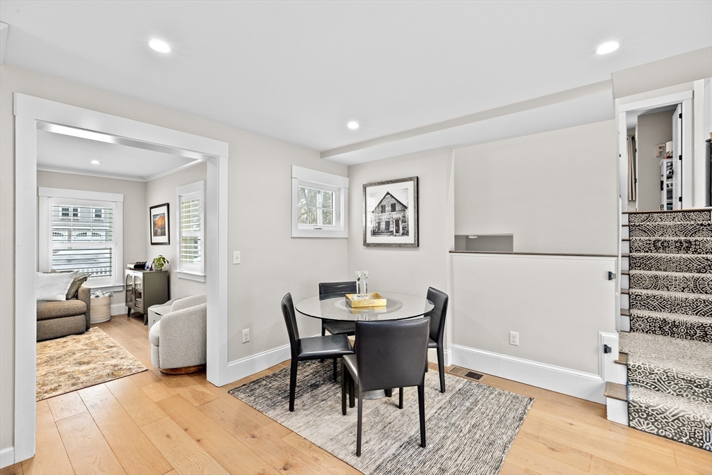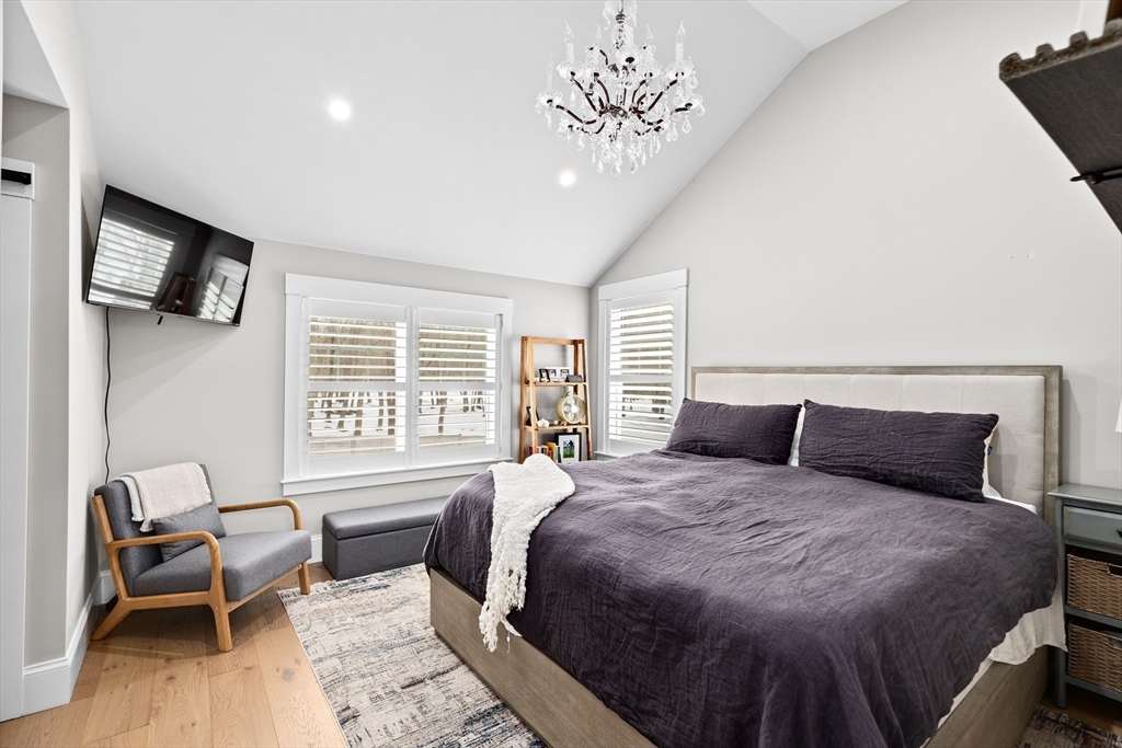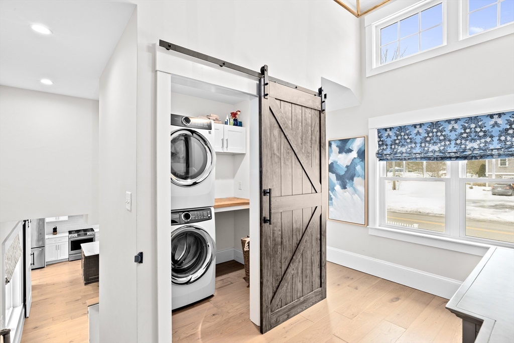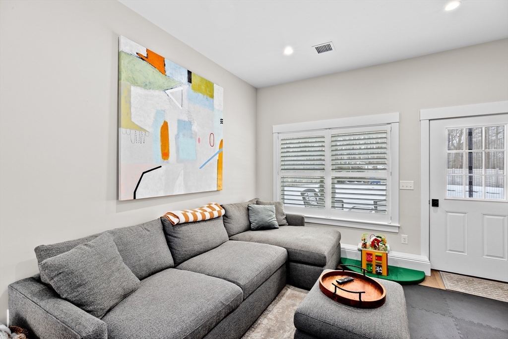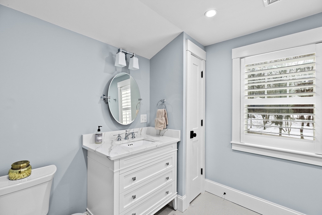 This classic New England farmhouse was beautifully renovated by Oak Development & Design in 2019, blending timeless charm with modern functionality. The main level offers a cozy living room with built-ins and shiplap detail, and a chef’s kitchen featuring quartz countertops and stainless steel appliances. There’s also a stylish half bath with a custom stone vessel sink and barn door, along with a separate dining area. The en-suite primary bedroom boasts vaulted ceilings, two walk-in closets, and a stunning bath with a glass shower. A second bedroom and full laundry room complete this level. Just up a few steps are two additional bedrooms, a spacious second bath, and extra storage. The walkout lower level includes a mudroom and an inviting family room with a gas fireplace and built-in beverage center. Outside, enjoy the newly fenced yard, deck off the kitchen, and a patio with a gas hookup—perfect for entertaining and everyday living.
