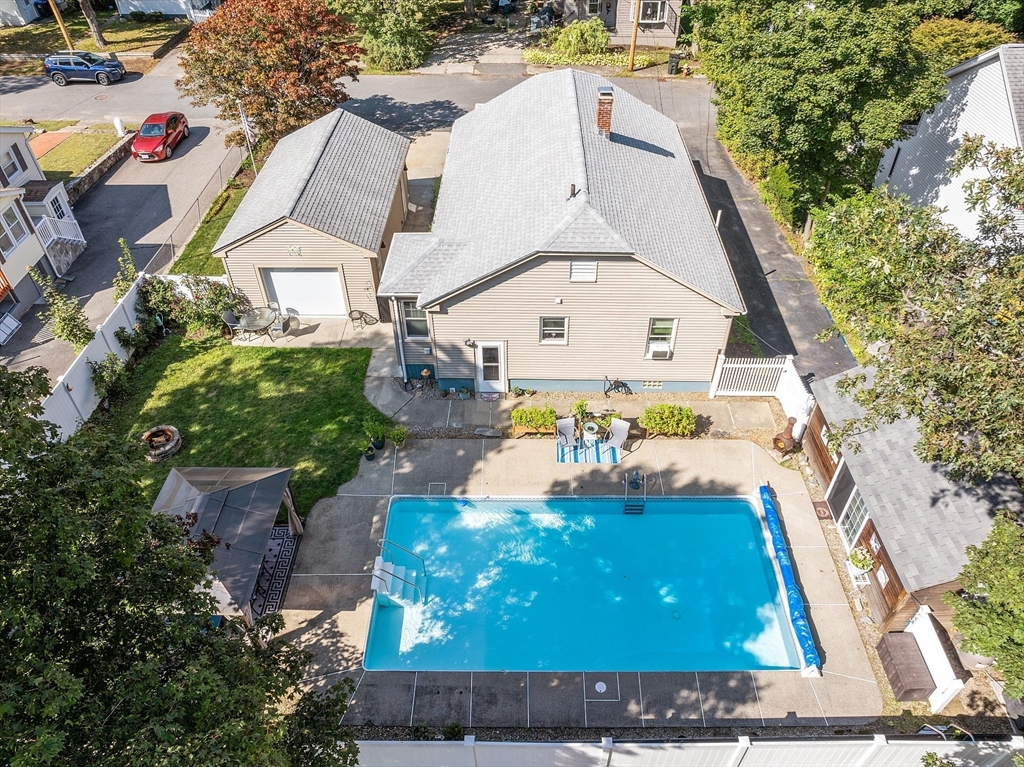 Step back in time to an era when craftsmanship and character defined every detail. Built in 1938, this classic Craftsman home combines timeless design with single-level living. Graceful proportions, rich hardwood floors, French doors, and built-ins showcase the artistry of the time, while updated kitchen and baths add modern comfort. Enjoy sun-filled rooms and a layout perfect for everyday living or entertaining. Outside, the fenced yard offers your own private oasis with an in-ground pool, patio, and multiple areas for year-round enjoyment. An oversized detached garage provides generous storage and workshop options, plus two driveways for guests. Tucked away on a quiet dead-end street with easy access to major routes this is where quality construction and classic design truly stand the test of time. Roof 2025,Boiler 2016...more interior photos will follow