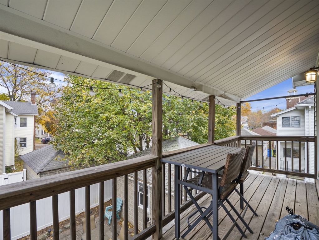 Welcome to 27 Dalton Rd – a rare opportunity to own a beautifully maintained 2nd floor 3-bed, 1-bath condo on one of Belmont’s most sought-after tree-lined streets. This charming home features private front and rear entrances, a sun-drenched living room with a wood-burning fireplace, beamed ceilings & recessed lighting. The spacious dining room flows seamlessly from the living area, perfect for entertaining.The eat-in kitchen is equipped with stainless steel appliances, ample counter space, and modern lighting. Three generously sized bedrooms offer comfort and flexibility, while the walk-up attic and private basement provide excellent potential for future expansion. Additional highlights include a private covered deck overlooking a lovely yard, natural gumwood trim, decorative molding, and 1 garage space plus 1 tandem driveway parking. Conveniently located near Harvard Square, public transportation, shops, restaurants, and all that Belmont has to offer. This home is truly a must see!