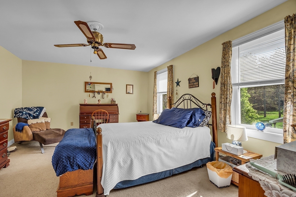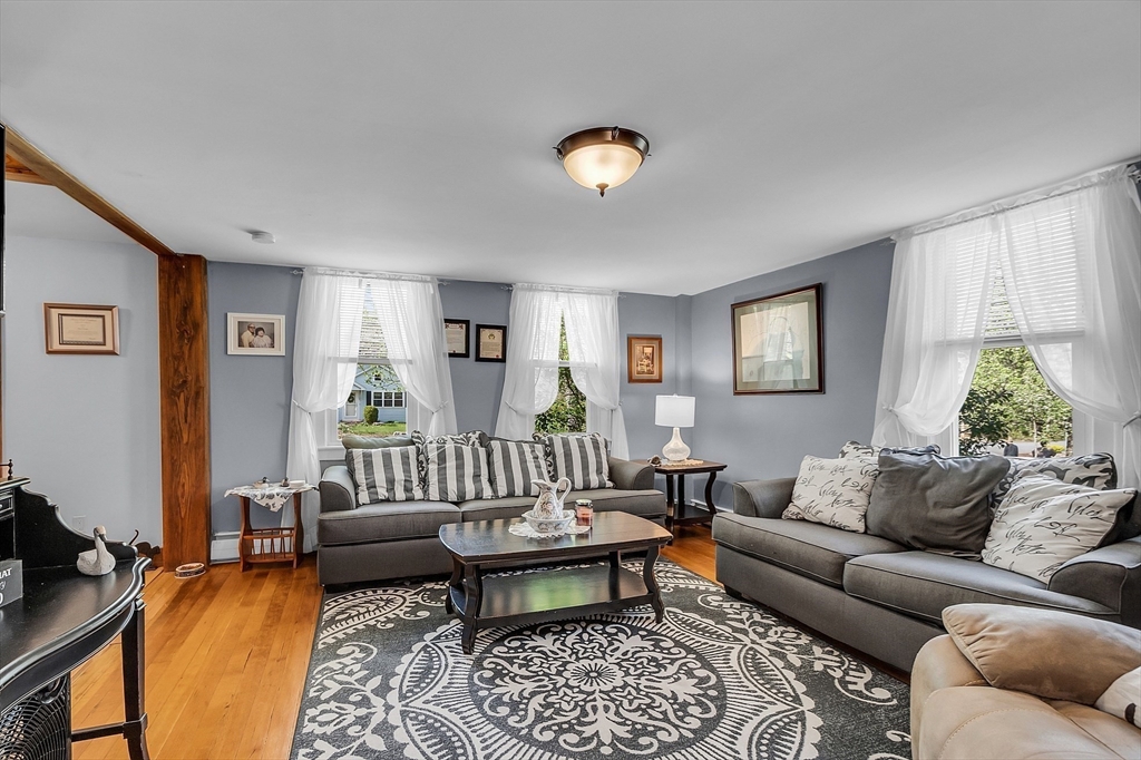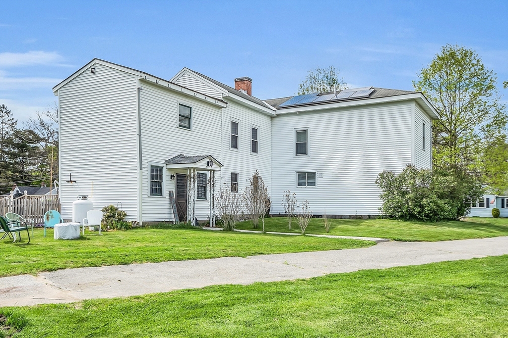 Welcome to this inviting New England Antique Farmhouse that perfectly blends historic charm with modern comfort. A bright home office, renovated bathrooms, and a convenient laundry room on the first floor make everyday living easy. The living room has newly added hardwood floors and updated windows. There are Three Spacious bedrooms, and a second living/den area off the main bedroom. Wide Pine wood floors, two back-to-back fireplaces, and period details add warmth and character throughout the space. Set on a generous corner lot with plenty of space for gardening or outdoor gatherings. Move-in ready with room to add your personal touch and bring this beautiful property to even greater heights. Conveniently located near Townsend Center, local schools, and abutting a desirable new green neighborhood.