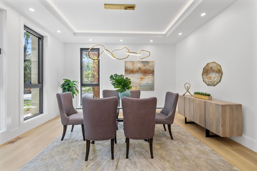 Welcome to your modern sanctuary — a beautifully crafted contemporary new home offering the perfect blend of clean architectural lines, thoughtful functionality, and luxurious comfort. This expansive 6-bedroom residence is ideal for today's lifestyle, boasting flexible living spaces and stunning design elements throughout.At the heart of the home is a spacious great room, designed to impress and inspire. Anchored by a sleek, modern fireplace, this open-concept living area is perfect for entertaining or relaxing with family. Large windows flood the space with natural light, creating a warm and inviting ambiance.The gourmet kitchen seamlessly flows into the great room, featuring high-end appliances, a generous island with seating, and stylish finishes that make everyday cooking a delight. A separate dining area offers an elegant setting for more formal meals. Four large bedrooms, with an impressive primary suite. Lower level with gym and bar area. Everything is here!