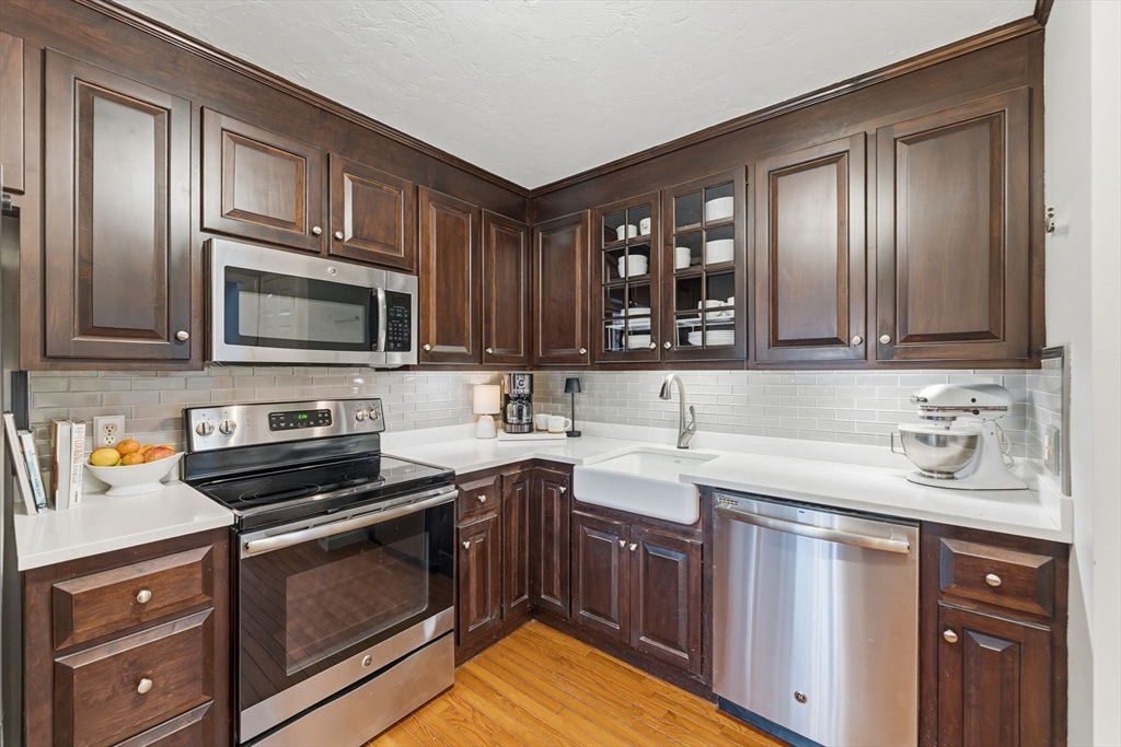 Lake life at Treasure Island. Opportunities in this highly sought after Webster Lake community are rare and for good reason. This beautifully maintained townhouse offers a bright, open living space with a natural flow that feels both spacious and welcoming. The main level features an inviting living and dining area, a well appointed kitchen with stainless steel appliances and quartz counters. Enjoy a private deck overlooking mature trees and green space, one of the few units offering the added bonus of a private backyard setting in a condo community. The finished walkout lower level expands the living space with a fireplace, half bath, and direct access to the private backyard. In-unit laundry and an attached garage add everyday ease. TWO DEEDED BOAT SLIPS, beautifully maintained grounds, a heated salt-water pool and private beach round out the lake-life amenities, with quick access to I-395, shopping, and dining this home pairs everyday convenience with the best of LAKESIDE LIVING!