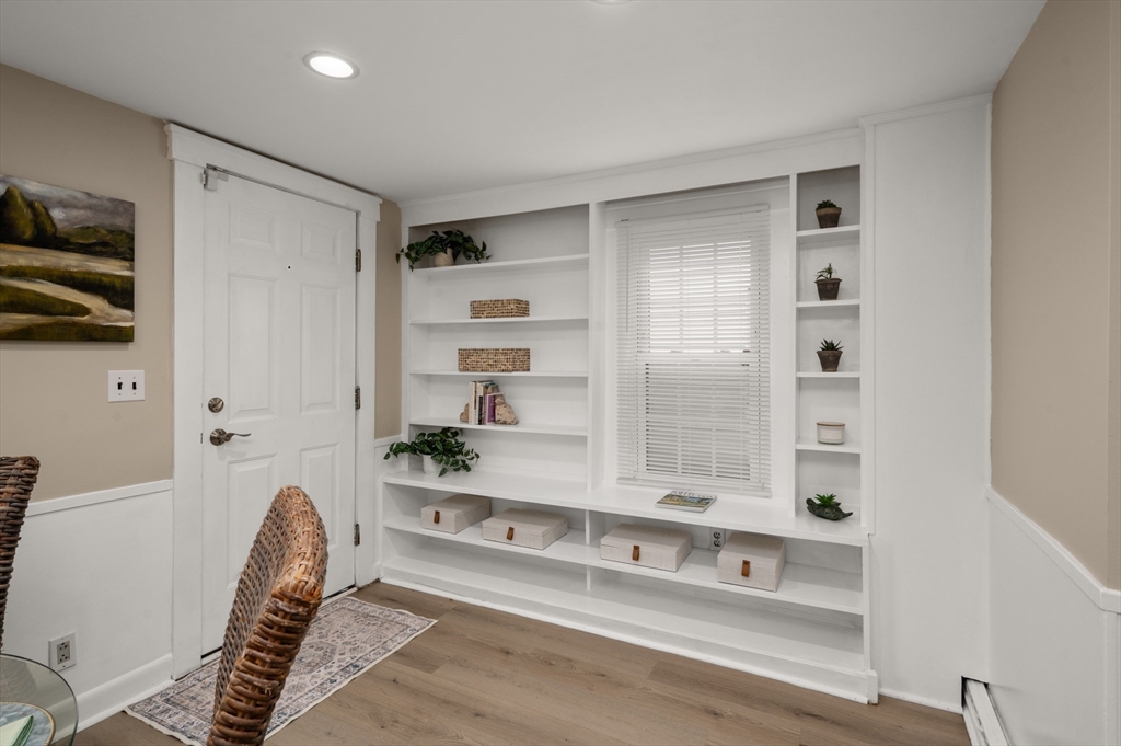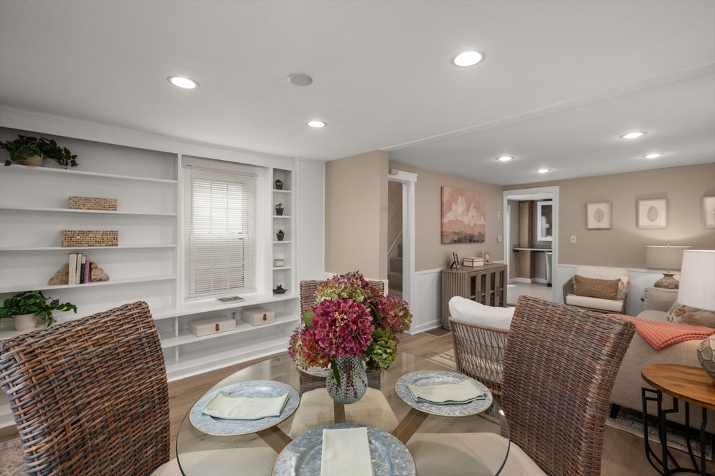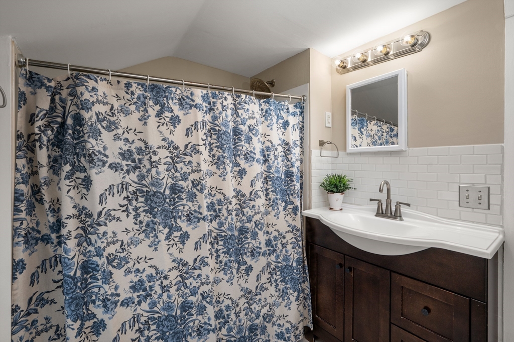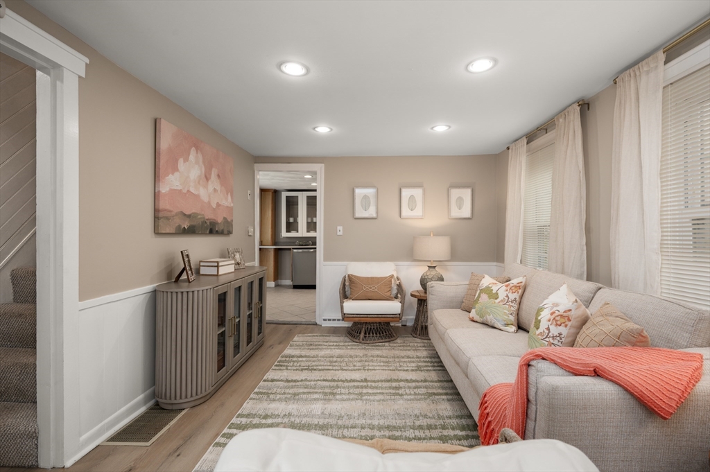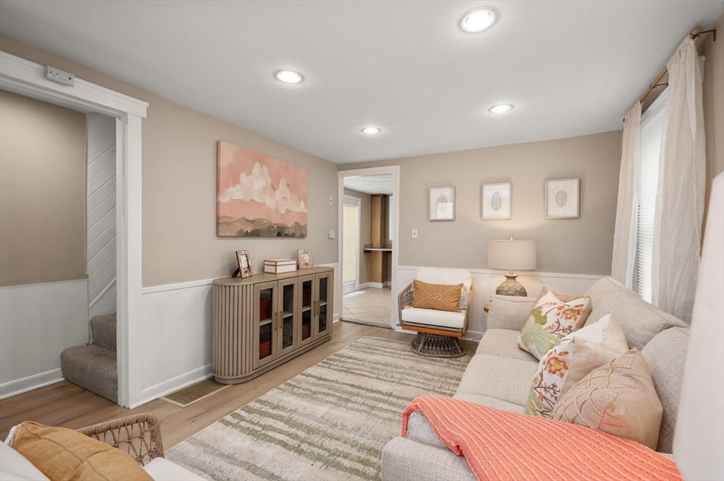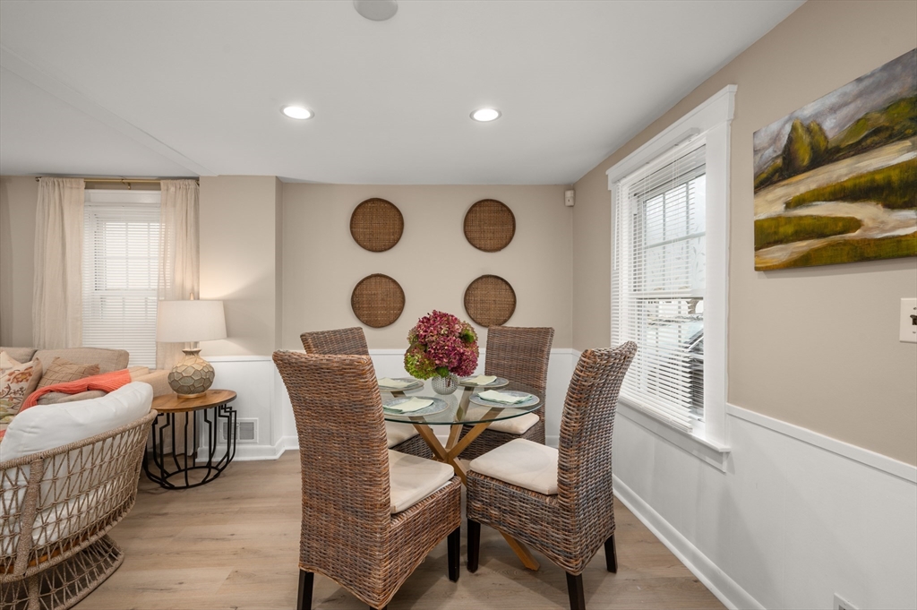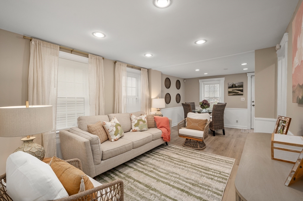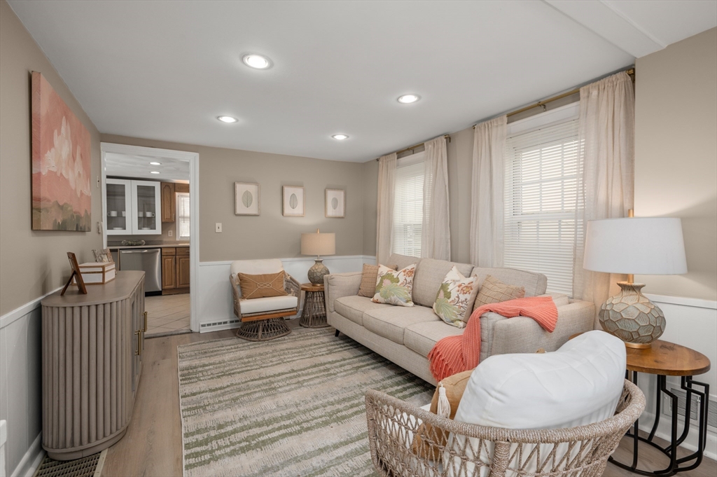 Quintessential charm meets modern day living in the heart of old North Andover. This is truly the sweetest property for new Owners to be home for for Holidays! Warm and inviting entryway into a seemless open concept floorplan. Entertaining ease with a combined living and dining room, thoughtfully designed space. Built ins and beautiful natural light add to the comfortable vibe in the main living area. Kitchen is well sized with french doors to freshly painted wrap around decking. Outdoor area is neat and tidy, fenced in and low maintenance, ideal for carefree lifestyles. Bedrooms with vaulted ceilings and wood beams, create a uniques backdrop for your decorating ideas. Full bath completes the 2nd floor space and has more added charm. Crisp, neutral freshly painted interior and central air are a bonus! Commuter friendly location and nearby to all that the vibrant North Andover community offers. Single family turnkey homes under 500K are few and far between in this sought after town!