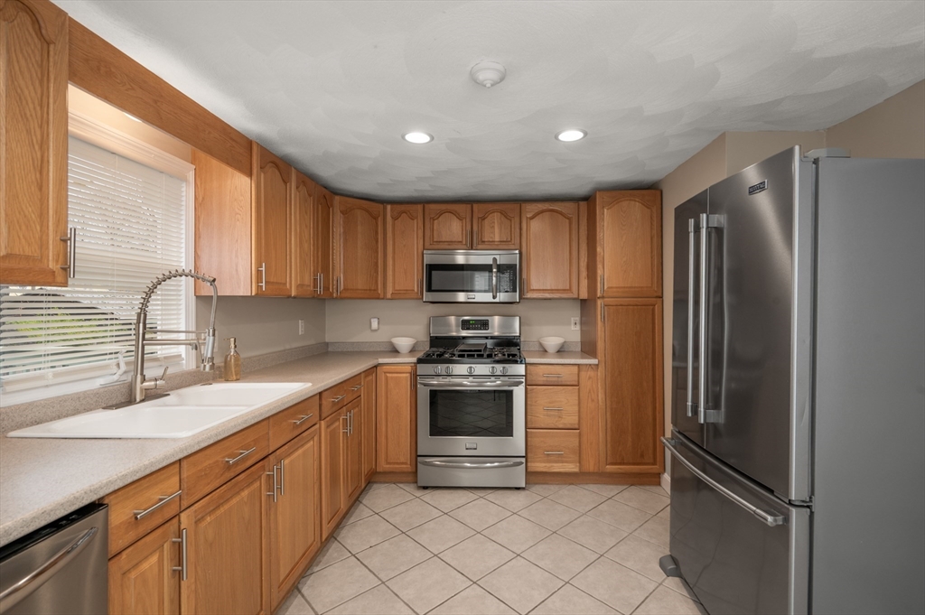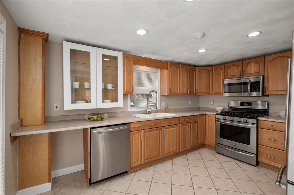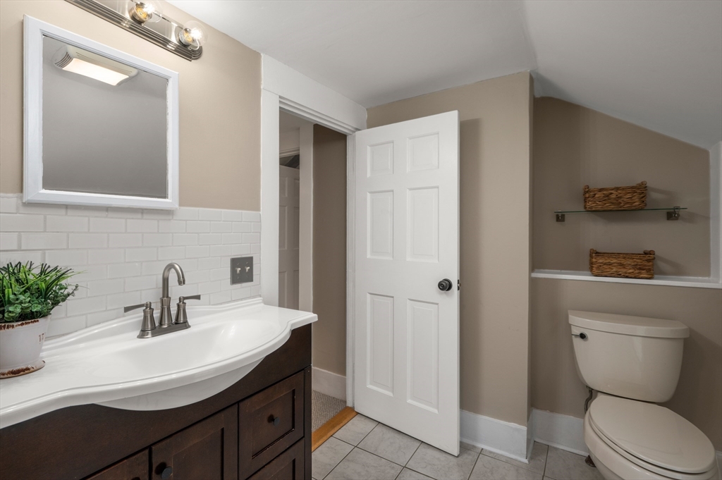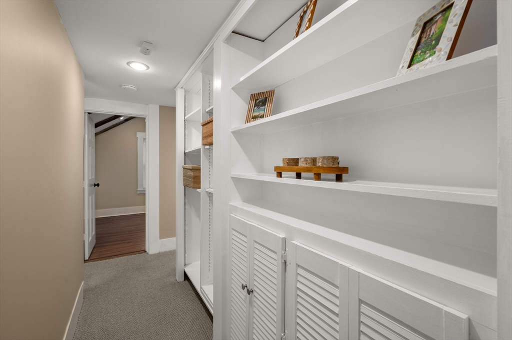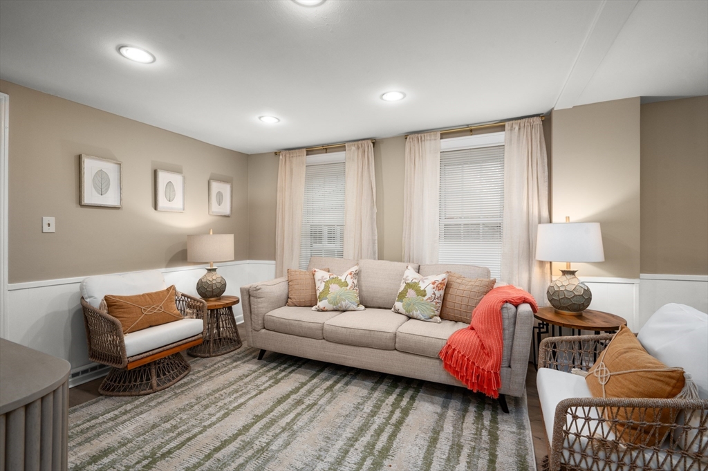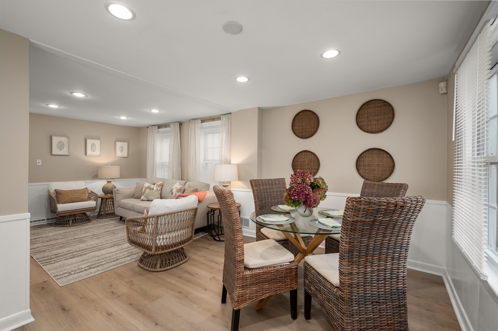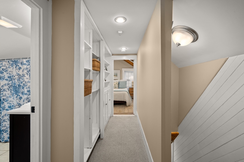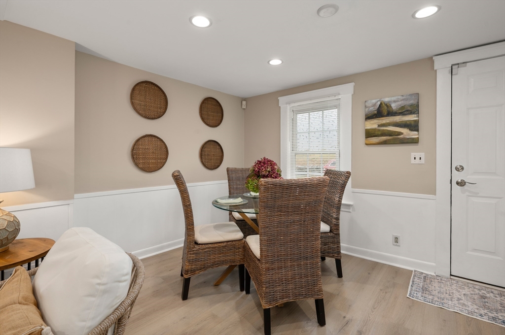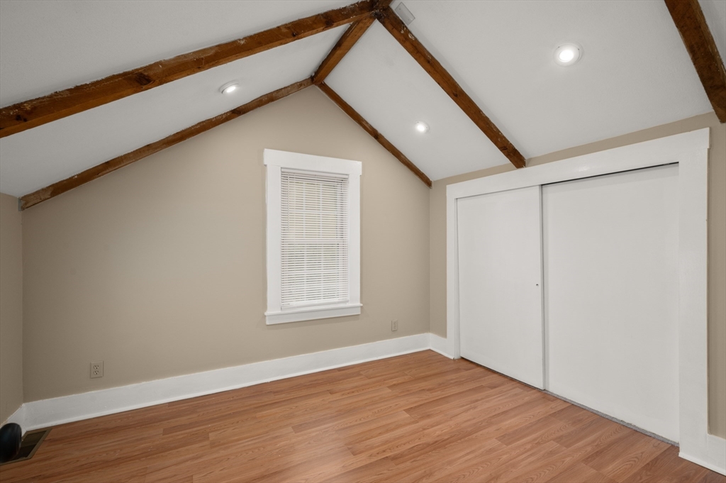 Quintessential charm meets modern day living in the heart of old North Andover. This is truly the sweetest property for new Owners to be home for for Holidays! Warm and inviting entryway into a seemless open concept floorplan. Entertaining ease with a combined living and dining room, thoughtfully designed space. Built ins and beautiful natural light add to the comfortable vibe in the main living area. Kitchen is well sized with french doors to freshly painted wrap around decking. Outdoor area is neat and tidy, fenced in and low maintenance, ideal for carefree lifestyles. Bedrooms with vaulted ceilings and wood beams, create a uniques backdrop for your decorating ideas. Full bath completes the 2nd floor space and has more added charm. Crisp, neutral freshly painted interior and central air are a bonus! Commuter friendly location and nearby to all that the vibrant North Andover community offers. Single family turnkey homes under 500K are few and far between in this sought after town!
