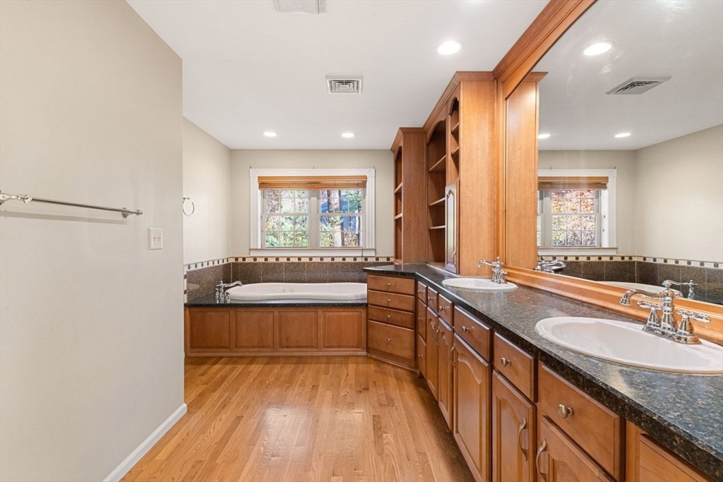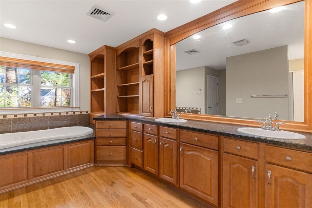 Welcome to 29 Belair Drive, a beautifully maintained 4-bedroom, 2.5-bath Colonial located in the sought-after Belair Estates neighborhood. The main level features a spacious open floor plan ideal for entertaining, including a custom kitchen with granite countertops, stainless steel appliances, and a large center island. A slider off the dining area brings you to a private backyard with an expansive deck, fish pond with waterfall, and storage shed. Upstairs, the impressive primary suite offers a walk-in closet and an ensuite bath with a soaking tub, double shower, and custom dual-sink vanity. Two additional bedrooms on this level include walk-in closets, plus a fourth bedroom. The finished portion of the lower level provides an excellent family room, playroom, or home office. The remaining unfinished area is already framed and ready for future expansion. Truly move-in ready — don’t miss this opportunity!
