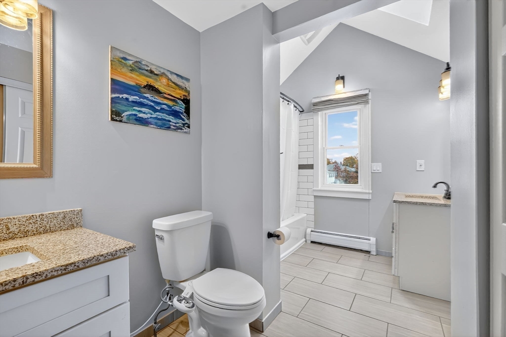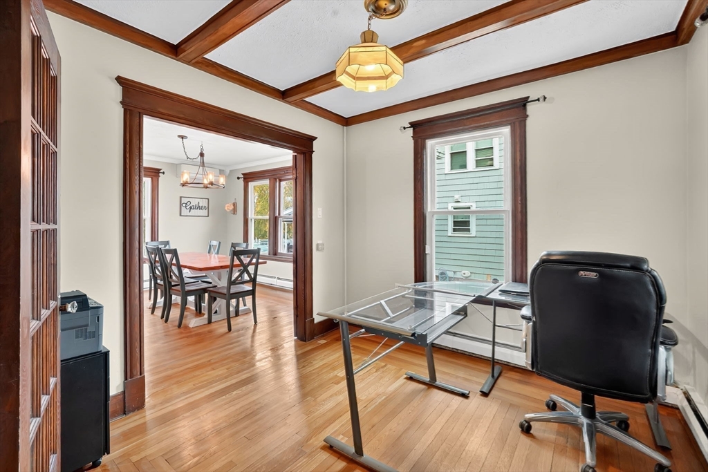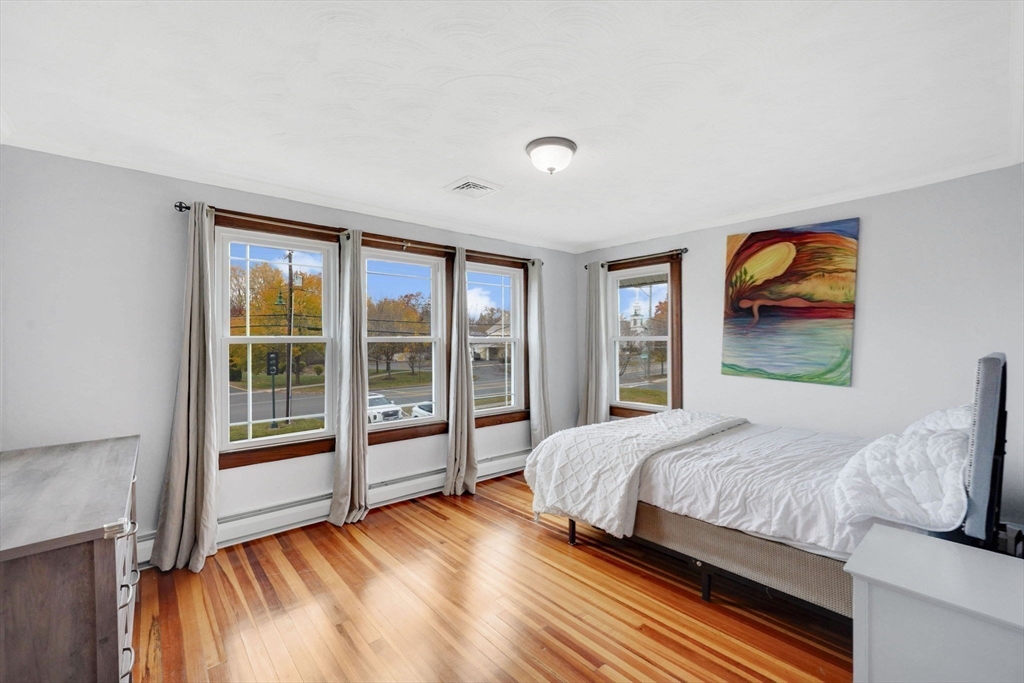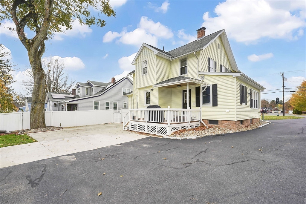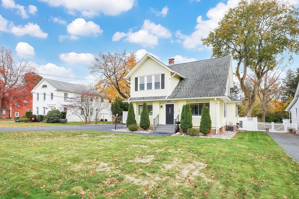 Welcome to 795 Main Street in Agawam — where timeless character meets modern comfort. This beautifully maintained four-bedroom Colonial offers two full and two half baths, rich hardwood floors, and beamed ceilings that showcase its century-old charm. Enjoy a bright updated kitchen with subway tile backsplash, stainless steel appliances, and plenty of prep space, plus a formal dining room and cozy living room with a wood-burning stove. A first-floor office with French doors provides the perfect work-from-home setup. Energy efficiency shines with solar panels providing zero electric costs and brand-new triple-glazed windows throughout. The detached two-car garage includes a finished bonus space with half bath—ideal for a studio, guest room, or home gym. Outside, the easy-to-maintain yard features lawn space, concrete patio and composite decking. This home has been meticulously maintained, blending original details with modern living.