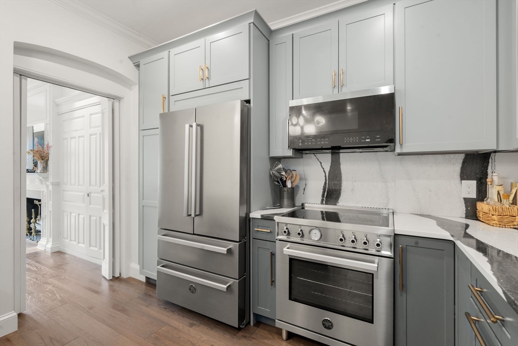 Refined Back Bay living meets modern comfort in this fully renovated 2-bed, 2-bath residence on Commonwealth Avenue, a short stroll to the Public Garden and Newbury Street. Set on the sun-splashed third floor of a distinguished 1899 elevator building, the home pairs classic details—hardwood floors, tall ceilings, exquisite moldings, exposed brick, and a statement fireplace—with today’s essentials, including central air and a thoughtfully designed dine-in kitchen. A bay-window living/dining area frames leafy mall and skyline views; both bedrooms enjoy en-suite baths, with the serene primary overlooking the avenue. Elevator, low monthly fees, elegant lobby, and an unbeatable address make this an effortless city home or pied-à-terre. OPEN HOUSE: SAT 11/08 11-1 & SUN 11/09 12-2