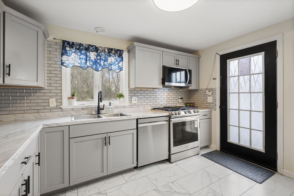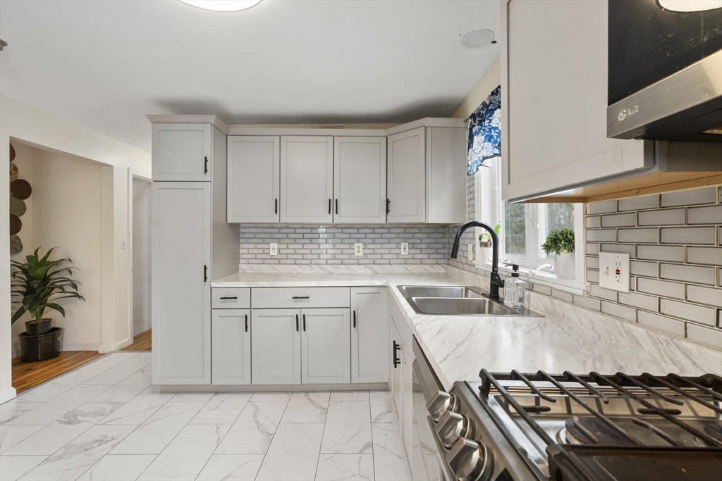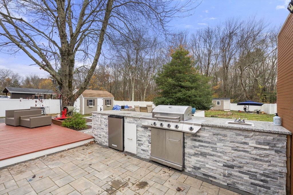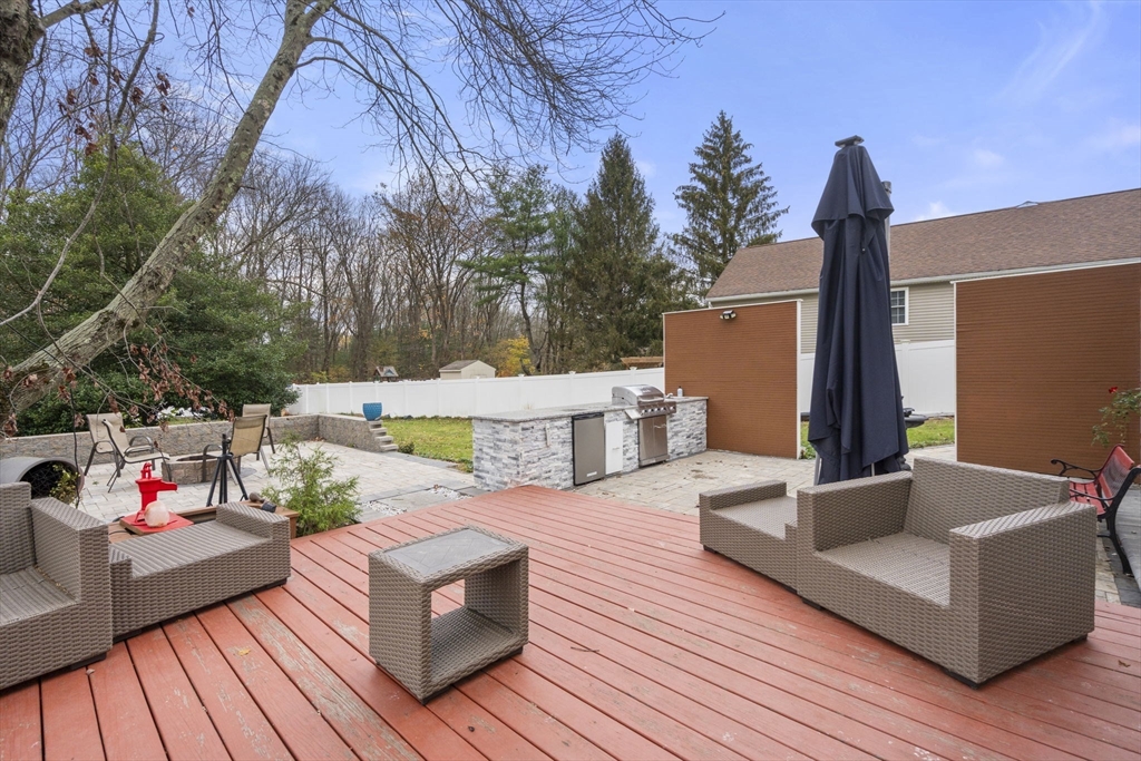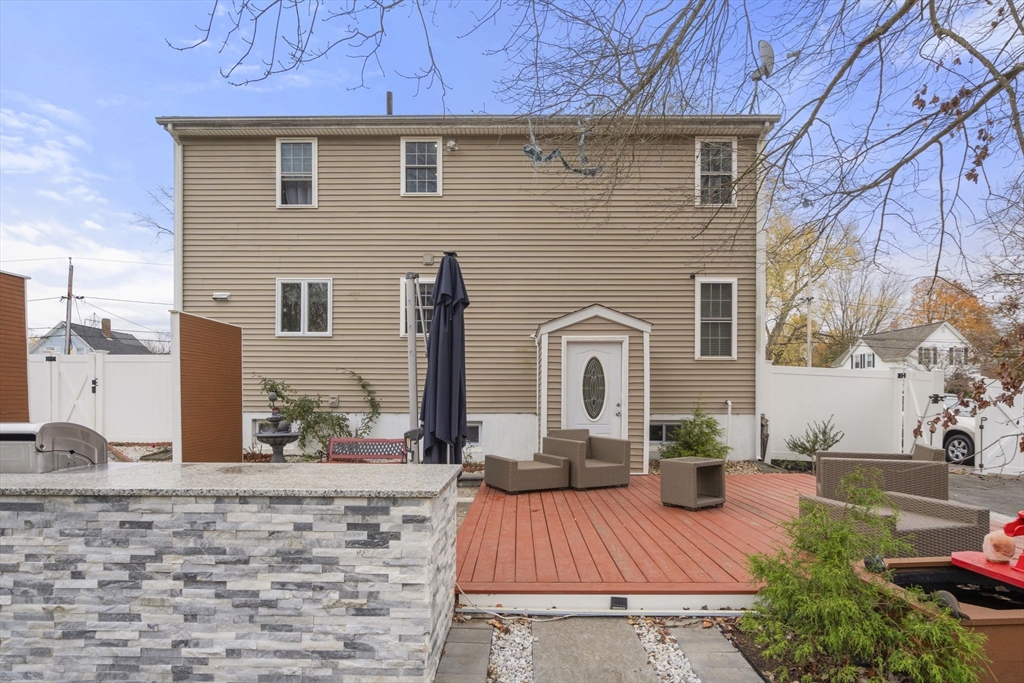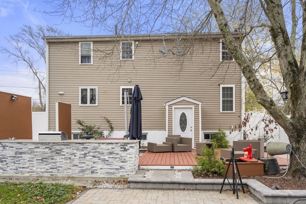 Welcome to this move-in-ready Cape, updated in 2007. The main floor offers a bright living room with a fireplace, hardwood floors, a flexible bedroom, and an open dining space leading to an updated kitchen with breakfast bar. Upstairs, you’ll find a main bedroom with plenty of storage, a cedar closet, a second roomy bedroom, and an updated bath. The finished basement gives extra space for relaxing, entertaining, a full bath, and laundry area. Freshly painted throughout. Step outside to your ULTIMATE BACKYARD RETREAT, complete with LARGE REDWOOD DECK, MODERN PATIO SEATING, a BUILT-IN STONE GRILLING STATION with STAINLESS APPLIANCES, and a FENCED YARD ideal for RELAXATION or ENTERTAINING. CUSTOM OUTDOOR KITCHEN makes gatherings effortless.. Schedule a tour today to see everything this home has to offer