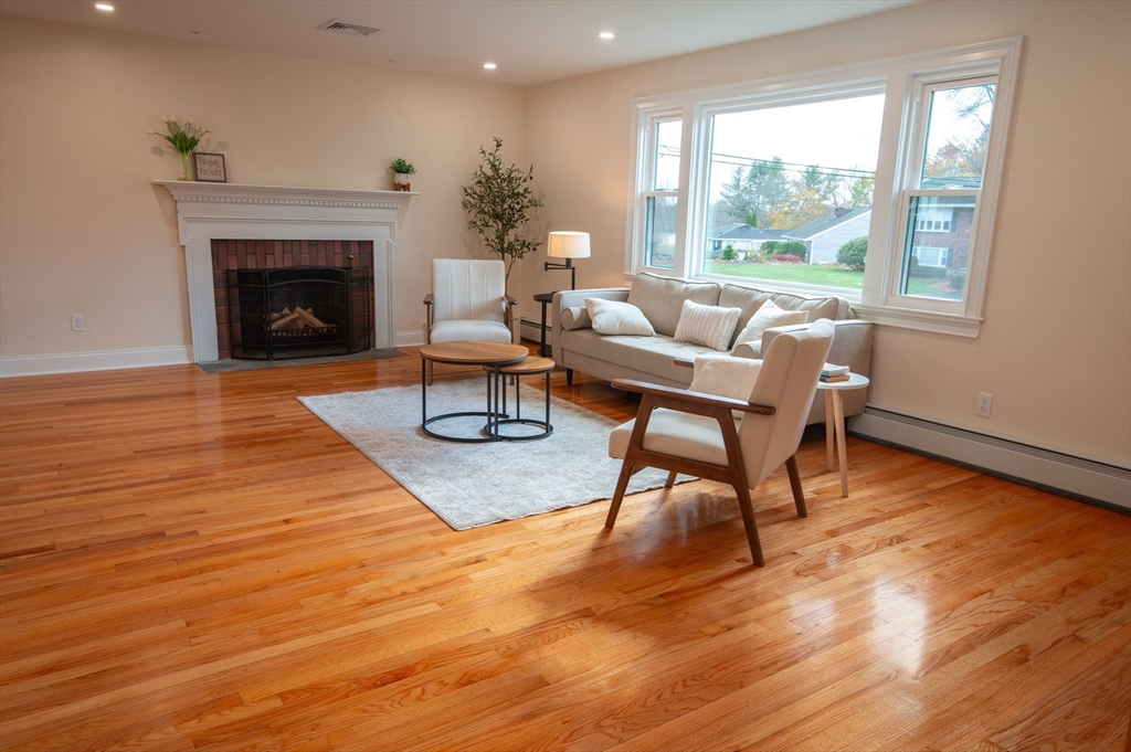 This fabulous Split Entry Single Family sits on an expansive 1/2 acres flat land in one of Reading's most desirable neighborhoods. Fully renovated with new: kitchen, baths, electricals, plumbing, 2 zones gas boiler and 3 zones Heat Pump, windows, siding, deck and much more. Featuring 2 levels of sun-filled space, comfort living area, a yard with large rear deck, ample space for gardening & enjoyment. The main level features an open floor plan, refinished hardwood floors, a chef’s kitchen with quartz countertops, high end appliances with peninsula for casual dining, access to the new deck, perfect for indoor/outdoor entertaining, cozy fireplace, primary suite with spa-like full bath, plus 2 additional beds and a full bath. The exceptional lower level, completely above the grade offers a family room w/ fireplace 1 bedroom w/ a full bath, laundry room, access to the oversized 2-car garage and storage, ideal for guests or multi-gen living. Don't miss the chance to make this home yours!
