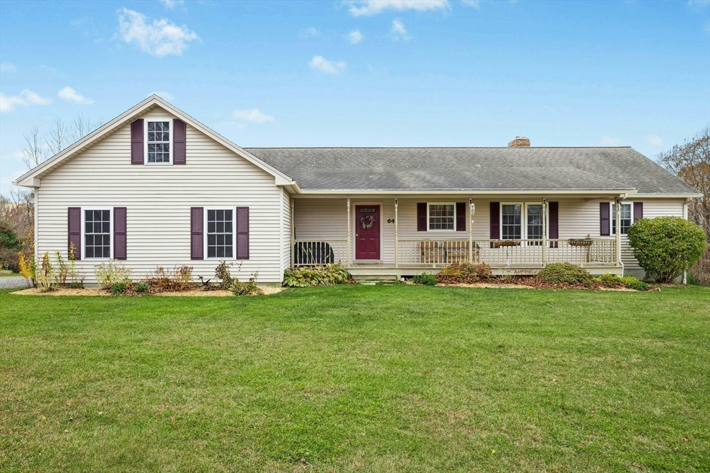 Would you like to be in your new home before the New Year? Don't miss this light & bright ranch home that offers open concept in the heart of the home.Kitchen w/granite countertops, SS appliances, breakfast bar & tile flooring is open to the dining room & living room for easy entertaining.The spacious living room w/tray ceiling, fireplace w/pellet stove insert & double sliders lead to the back deck for beautiful sunset views.Desirable split bedroom layout...master bedroom w/walk-in closet & private bath on one side of the home & 2 add'l bedrooms & full bath (freshly painted & new flooring) on the other side. Main level laundry & two car attached garage complete this single level home. Full walk-out basement w/steel beam support provides open area w/high ceilings... great potential for add'l living space, workshop or storage.Enjoy gardens, fruit trees & wildlife from the front porch, back deck or pool! The 24' above ground pool has new pump, filter & cover.Home is wired for generator.