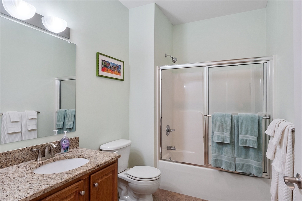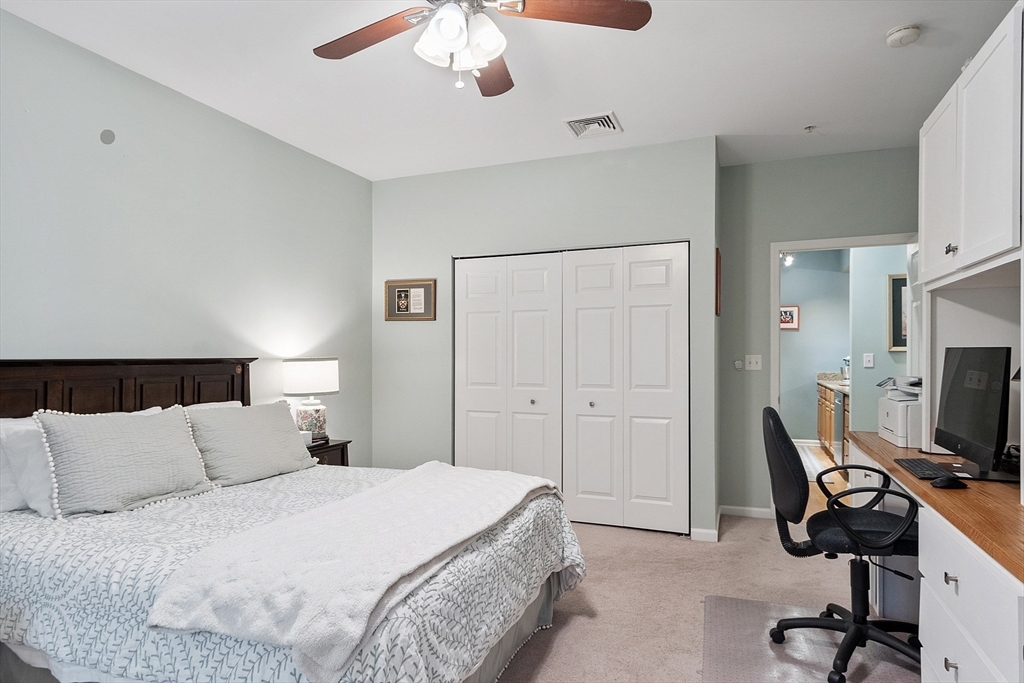 Welcome to The Falls at Arden Mills. This spacious, meticulously maintained unit offers 2 bdrm, 2 bath, in-unit laundry on single level living, 9' ceilings & a private balcony. Open concept layout creates a great space for entertaining! Galley kitchen features SS appliances & granite counter tops w/added new custom cabinetry on peninsula. Dining room opens to the spacious living room w/electric fireplace & sliders to your covered private balcony. Main bedroom features wall-to-wall carpeting, 3/4 bathroom w/walk in shower, California closet system & wall storage unit. Bedroom 2, features a double California closet system, built in desk/storage & wall-to-wall carpeting w/a full bathroom across the hallway. Added bonus, 2 deeded parking spots in Heated Garage w/private storage & plenty of additional parking in common area. Secured entry, elevator access to all floors, common patio, paths to the waterfall & to the Twin Cities Rail Trail. Up to 2 dogs allowed with assoc. approval.