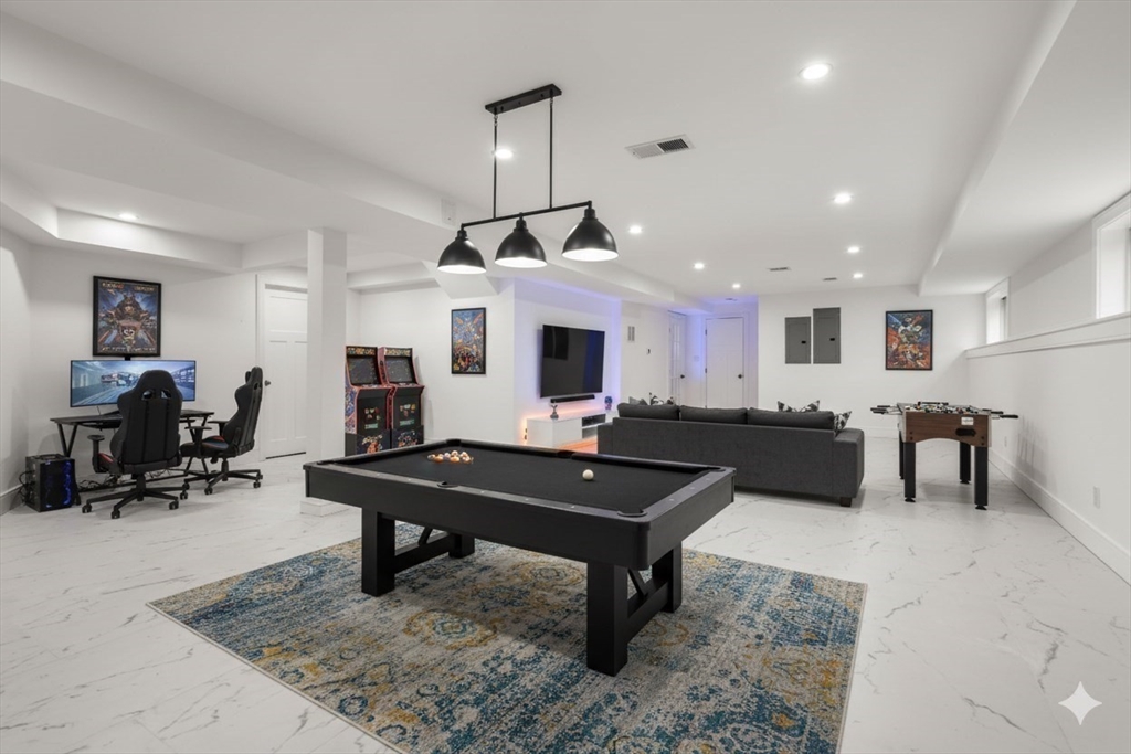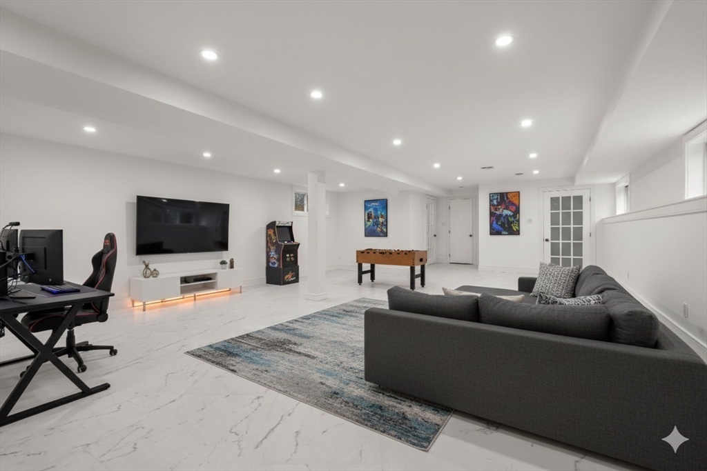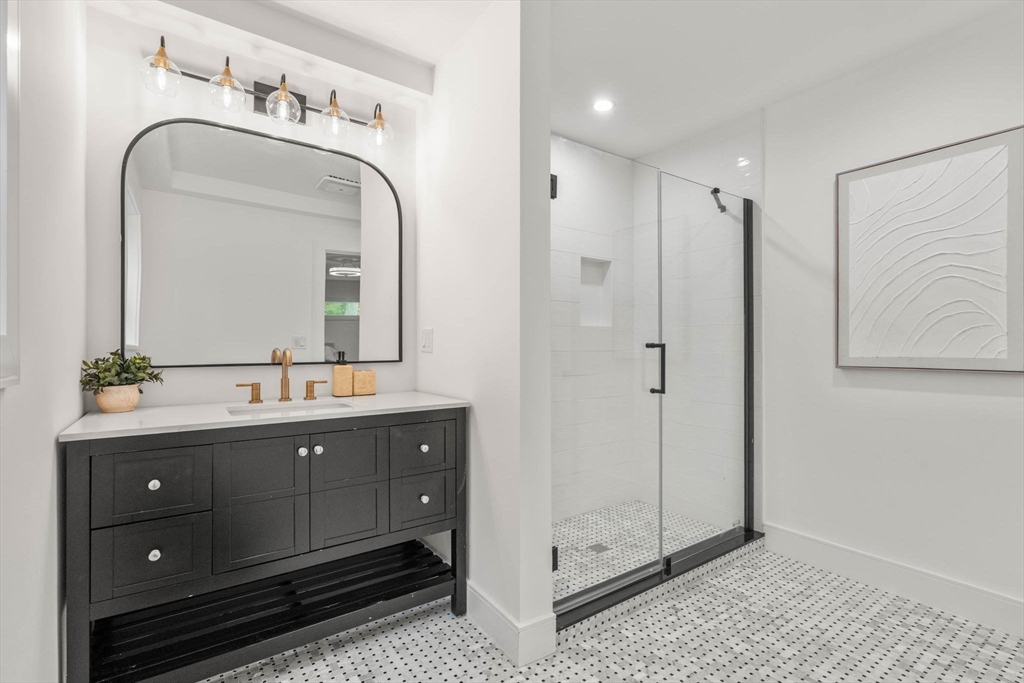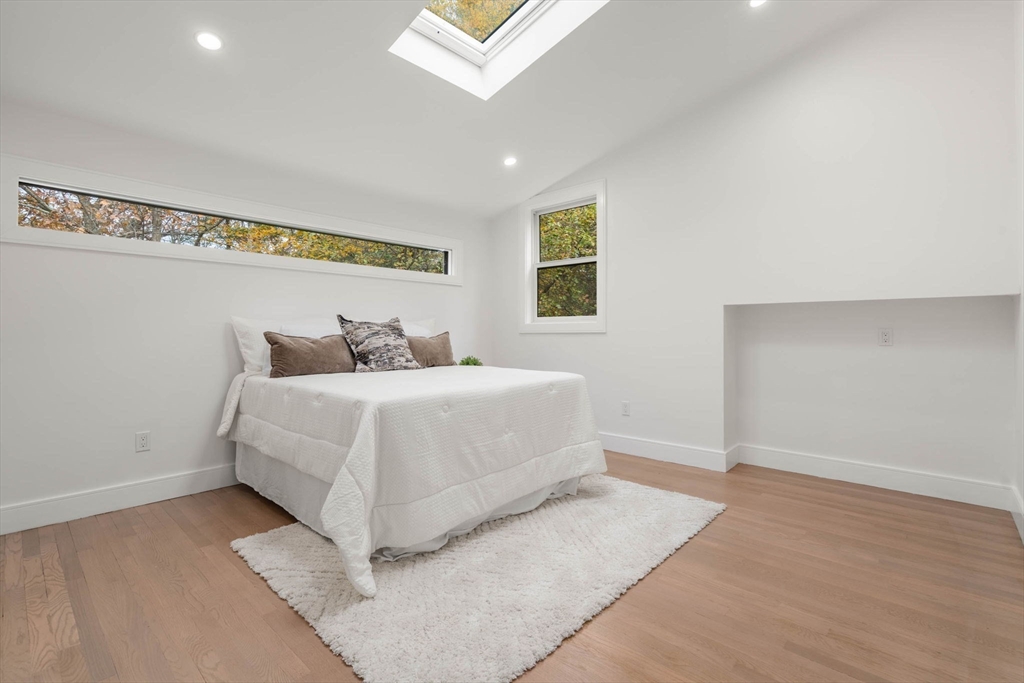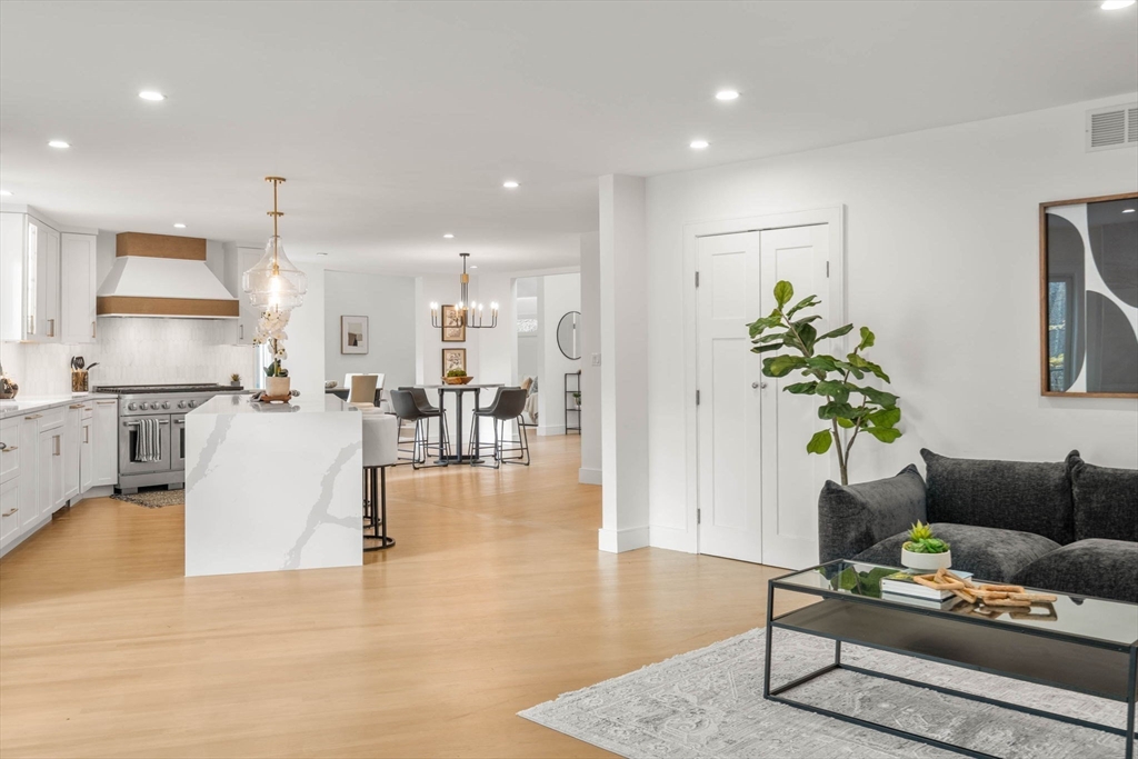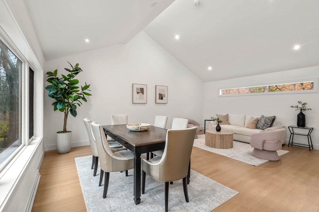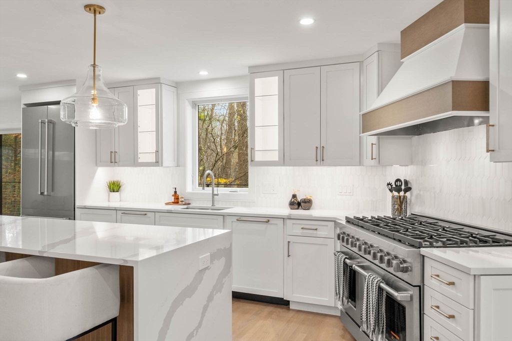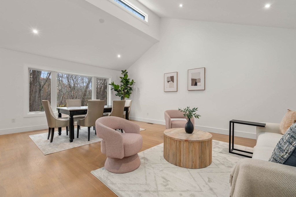 Completely renovated and masterfully reimagined, this stunning contemporary home impresses! Privately set on 2.61 acres, a dramatic foyer welcomes you with soaring ceilings, crisp white finishes, and walls of glass that bathe every space in natural light. Designed for modern living and effortless entertaining, the open floor plan showcases a spectacular vaulted living room and state-of-the-art eat-in kitchen with sleek white cabinetry, a large quartz island, and premium stainless-steel appliances. The adjoining family room centers on a striking floor-to-ceiling gas fireplace and flows to an expansive composite deck overlooking the brick patio and flat, park-like backyard. Offering four spacious bedrooms—including first- and second-floor primaries with luxurious en suites and walk-in closets—this home also features a finished lower level with game room, half bath, laundry, and abundant storage. Enjoy top Weston schools, serene privacy, and easy access to highways and the commuter rail.
