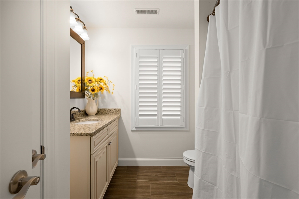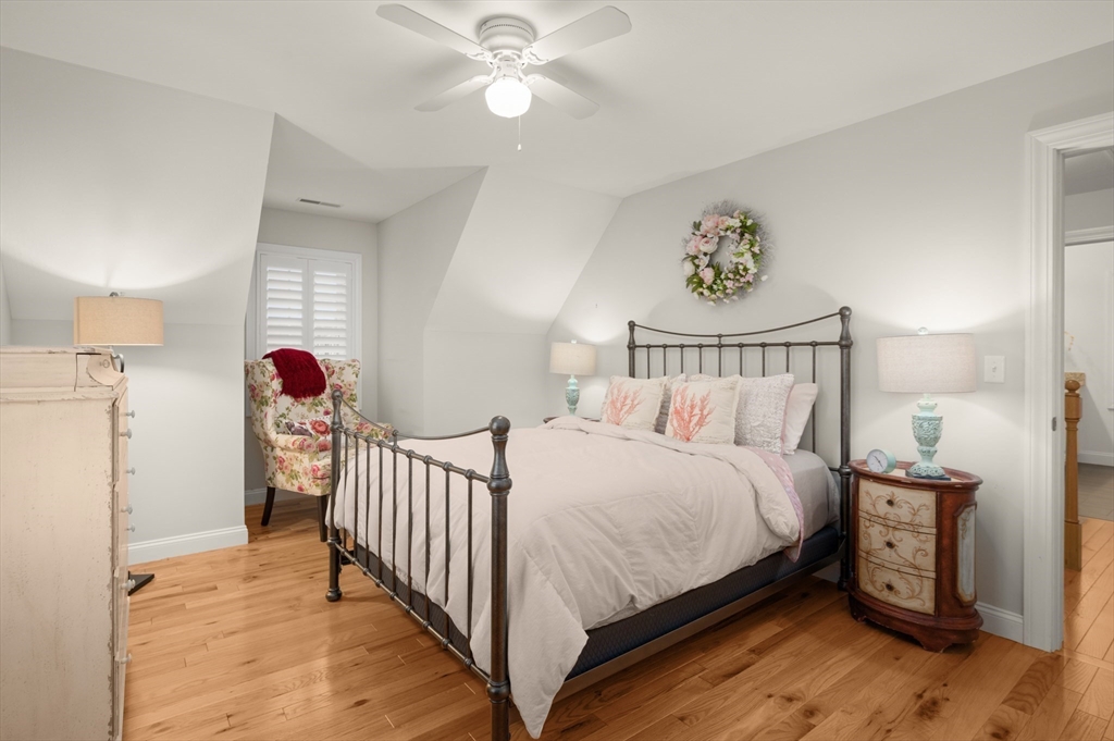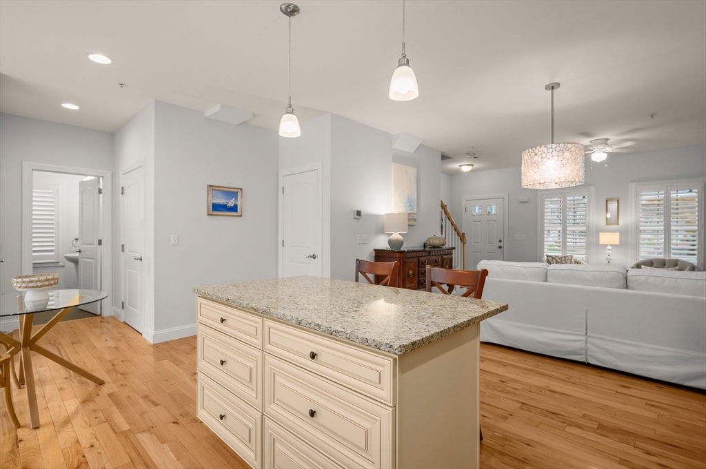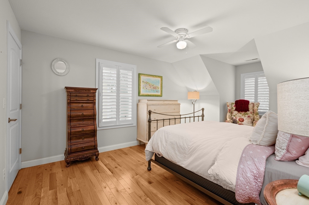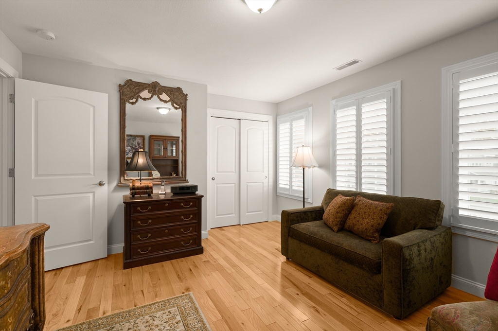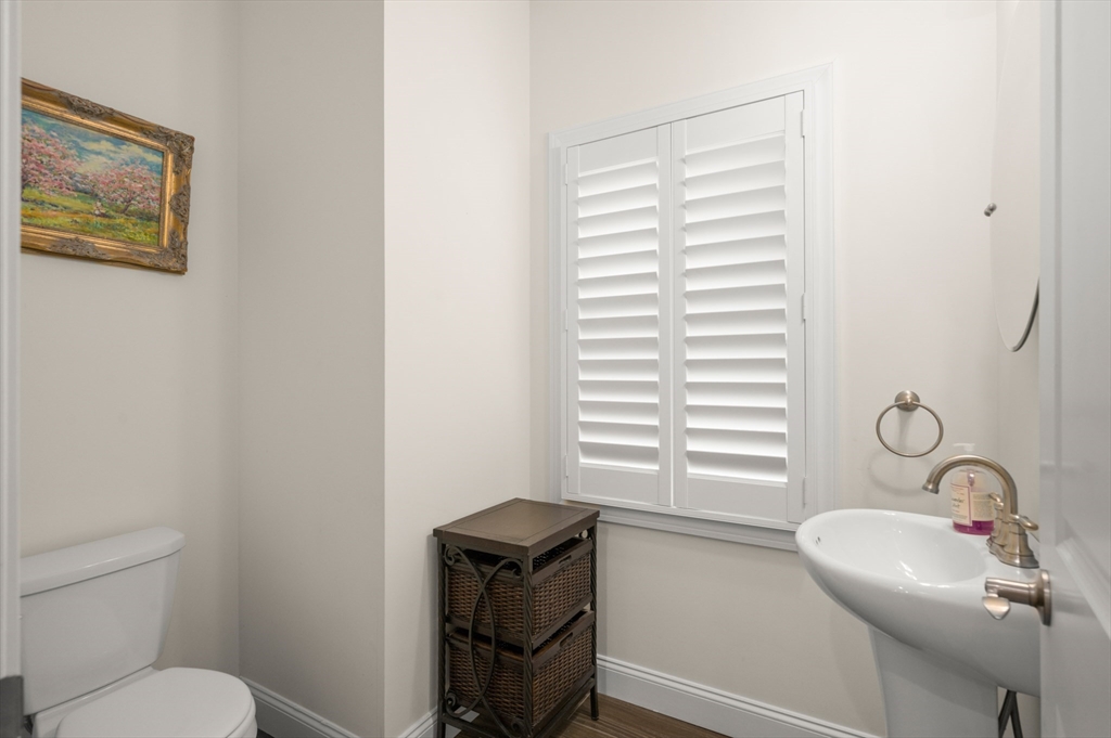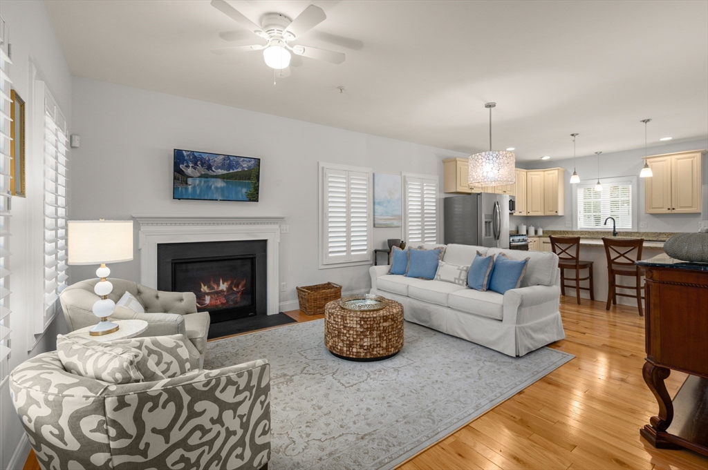 Highly coveted Carrington Estates detached 3 bedroom 2.5 bath condo is a rarte find! Simply stated and sophisticated style offers instant appeal. A thoughtful floorplan with a designer interior vibe. Inviting kitchen with warm toned maple and cabinetry and contrasting stone countertops flows seamlessly to the dining area. Expansive living room with gas fireplace and rich hardwood flooring throughout. Deck is easily accessed as well as the laundry and powder bath to complete the main level. Primary en suite with spacious bath and walk in closet, added dormer creates a cozy nook. Two additional generous size bedrooms and full bath provide ample space for any lifestyle. Gorgeous custom plantation shutters on all windows and oversized basement is ideal storage or future bonus space possibilities. Thriving community in sought after Bradford neighborhood. Comes see this stunning home!