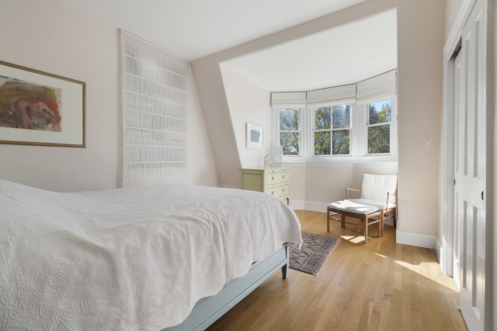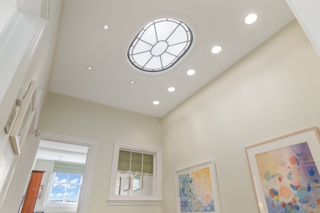 Rare opportunity to make this spectacular fountain facing 2 bed Union Park penthouse your next home! Enter the oversized living room and your gaze will be drawn to the dramatic wall of windows that extends across the breadth of the space, with the full expanse of glass complimented by skylights that wrap onto the ceiling. The LR/DR area is further enhanced by custom built-ins, hidden storage, and integrated speakers. Hardwood floors and designer lighting throughout the home. The cherry-wood kitchen by Payne Bouchier features black granite counters, Sub-Zero and Viking appliances, and light-blue ceramic pavers. Yet another of 9 skylights anchors the kitchen, this one fabricated in stained glass by South End artist Jim Anderson. The marble-clad bath features a heated Jacuzzi tub and blue-glass detailing. 2 park facing BRs, including a bow front primary with bucolic views. Upstairs, a head house opens to a private roof deck from which the full 360-degree skyline panorama can be enjoyed.
