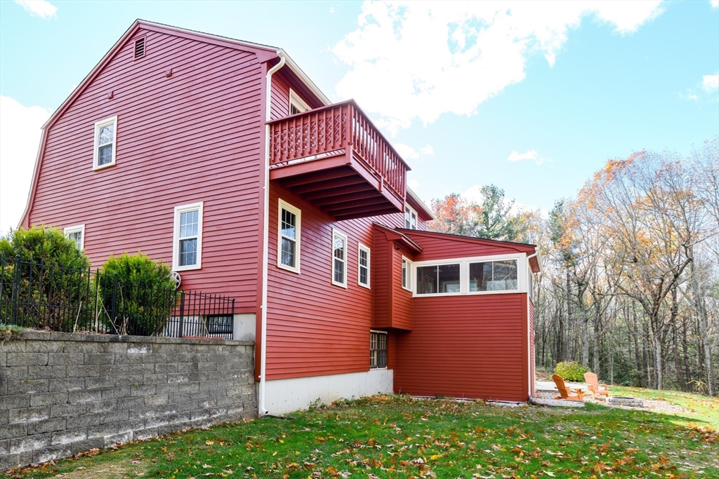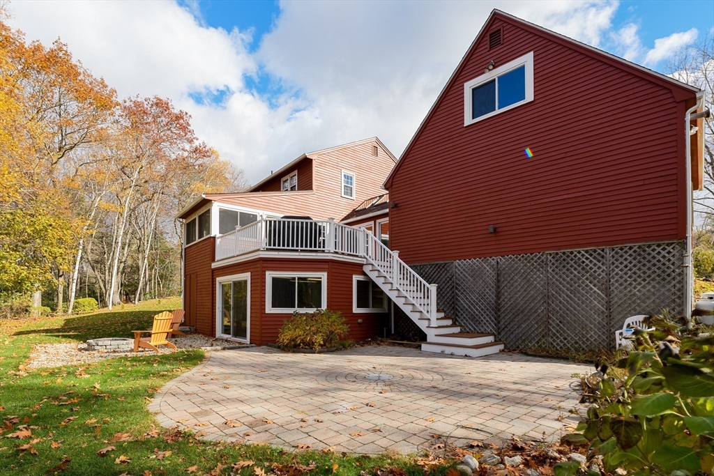 Tucked at the end of a cul de sac surrounded by over four acres of land. Upon arrival you will see the freshly painted exterior , new roof & brick walkway welcoming you inside. Flexible floor plan offers open living area w/FP LR, dining in kitchen w/ corian counters, island & plenty of cabinets. Formal DR & 1st floor bedroom option or office all w/ hdwd floors, step down sunrm offers beautiful seasonal views of the wooded yard accented w/ fruit trees & flowery shrubbery. Large mudrm w/ skylight and slider to young composite deck complete the main level. 2nd floor caries thru the hdwd fls offering 3 spacious bdrms incl the primary suite w/ walk in closet, private bath & French doors leading to your own balcony. LL is finished making a greet office space, family rm or both plus a separate game rm area w/ sauna. From there you can enjoy the beautiful cobblestone patio , garden pond & firepit. Bonus items inc: 2 car garage w/2nd fl storage , new heating sys ,windows & so much more