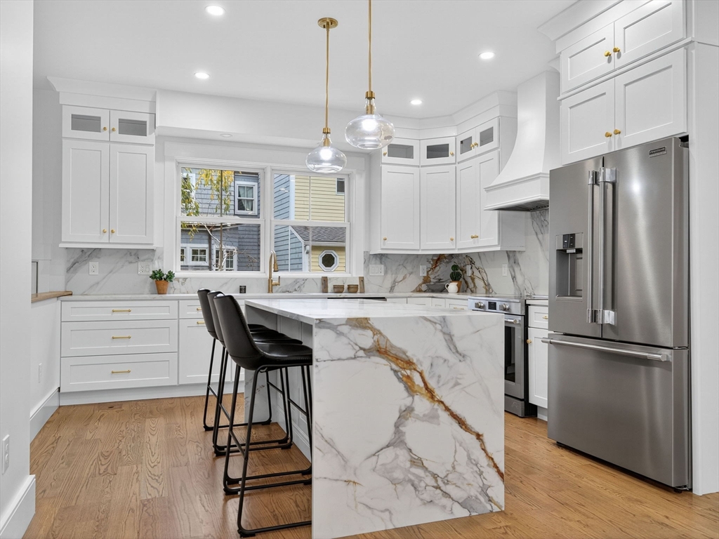 Designed with elegance and sophistication, this first floor Philadelphia-Styled condo offers 4 beds, 3 baths and 1 off-street parking spot! The main level boasts an expansive floor plan and has plenty of windows for copious amounts of natural light throughout the day. The fully equipped kitchen has electric cooking, stainless steel appliances, & shaker cabinetry complemented with gold hardware. Two bedrooms including an en ensuite complete the main level. 2 bedrooms and a full bath are located on the lower level - great for guests! Other noteworthy features include in unit laundry, a storage area in the basement, private yard and shared patio. Conveniently located between Union and Inman Squares with a variety of local shops, unique eateries/bars and close to the Union Greenline T-Stop.