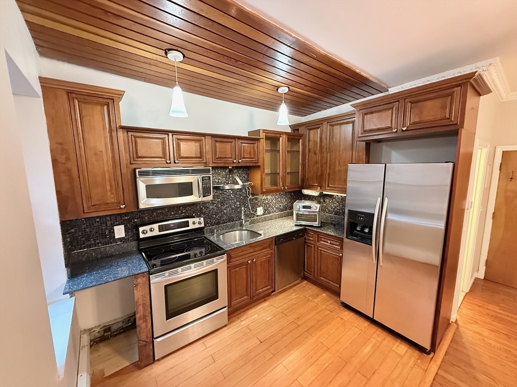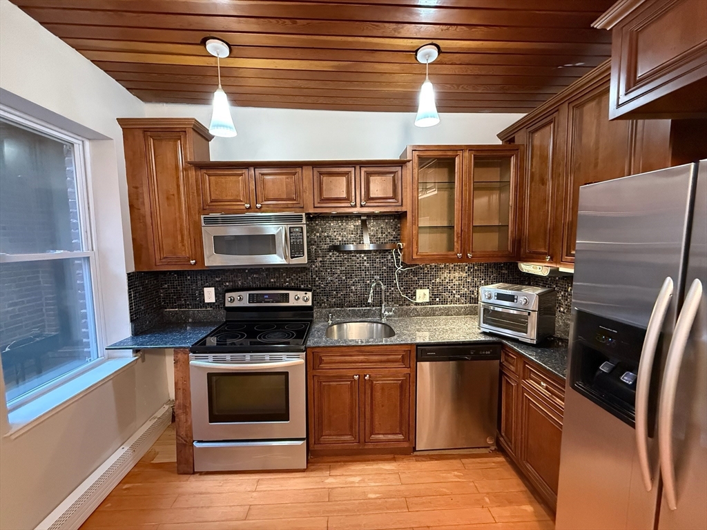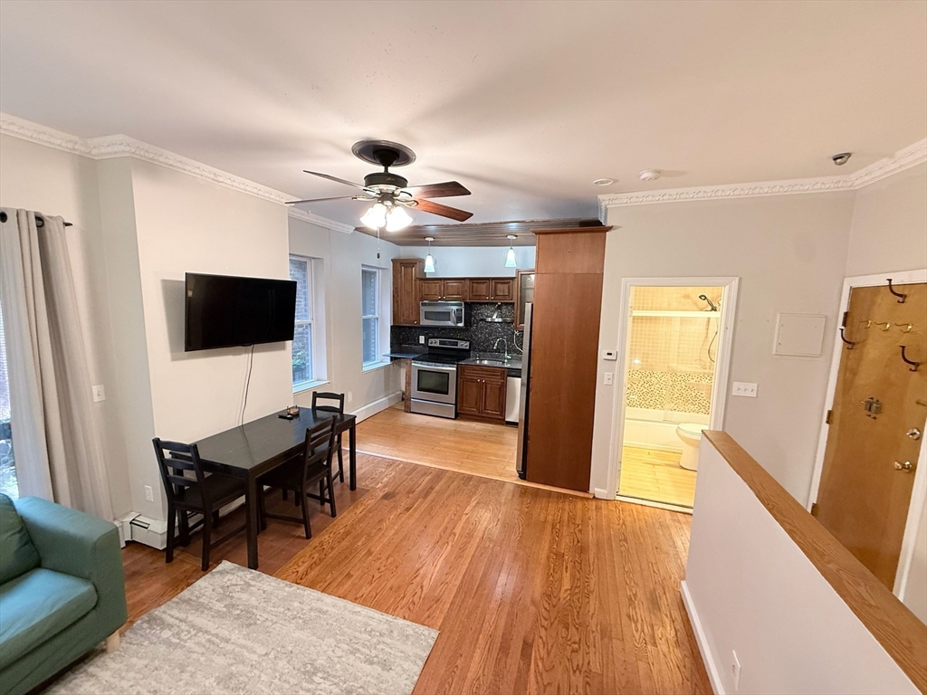 Enjoy two levels of comfortable living with direct courtyard access in this beautifully maintained residence. Ideally situated at the crossroads of the Emerald Necklace, Brookline Village, and Longwood Medical, with convenient access to the Green Line, this home offers both charm and convenience.Step inside to a bright open-concept living and dining area featuring a wood-burning fireplace, perfect for relaxing or entertaining. The adjacent kitchen is generously sized with stainless steel appliances, hardwood cabinetry, and granite countertops. A full bath completes the main level.The lower level features two spacious bedrooms, an additional full bath, and direct access to the serene common courtyard. Don’t miss this opportunity—schedule your private showing today!