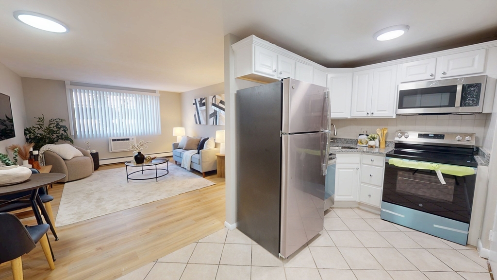 OPPORTUNITY KNOCKING! Homeownership is yours in this Newly Renovated, Sunny Suite in a brick mid-rise condominium building in Prime Hancock St area ! This 2nd floor suite boasts a Granite and Stainless kitchen with NEW appliances & ample white cabinetry. Ceramic tile bathroom. The entire unit has been freshly painted. NEW flooring throughout. Enjoy Modern Living with this open floor plan- Living rm, Dining Area PLUS Generous bedroom with double closet. 1 car off-street parking. Heat and hot water are included in condo fee. Cat allowed with board approval. With a walk score of 88 you will be in downtown Everett in 11 minutes or Bike it in 2 minutes! Everett, known for its great public transportation, vast amount of diverse restaurants, many stores and spacious parks and entertainment options this beautiful condominium is your opportunity to own HOME