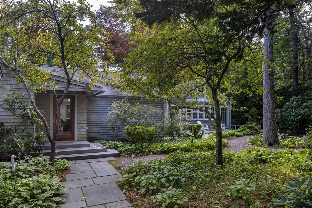Stunning Marion village, architect-owned, 4 BR/3.5 BA home with 1st fl primary suite, home office, swimming pool, guest house w/ bedroom/full bath, garage, garden shed, and deeded Water St waterfront dock. This thoughtfully renovated, modern shingle style home offers a central village location and proximity to shops, restaurants, Beverly Yacht & Sippican Tennis clubs, and Tabor Academy, while tucked away down a private way on a 1.2-acre lot w/ beautiful natural gardens and extraordinary privacy. You’ll find an open floor plan w/ clean lines and walls of gorgeous Douglas fir windows and doors that fill w/ light throughout the day. Relax or entertain in your spacious living room w/ gas fireplace and built-ins overlooking a backyard pool/spa and patio. The kitchen w/ large island and high-end appliances is a chef’s dream w/ adjacent dining room and screened-in porch. Both bedrooms on the 2nd fl have ensuite baths. Guest house ideal for living & hobby space. Extraordinary village compound!