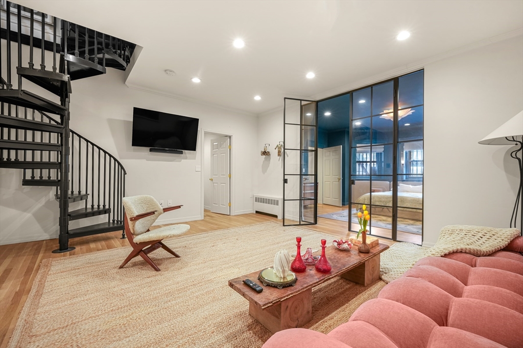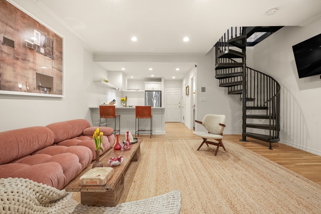 Welcome to 116 Commonwealth Avenue, an exceptional parlor garden duplex with direct-access DEEDED PARKING nestled in the heart of Boston's prestigious Back Bay. This beautiful residence offers nearly 1500 square feet of sophisticated living space, adorned with hardwood floors and filled with natural light. The parlor level captivates with its high ceilings, stunning millwork, and custom built-ins, all framed by oversized bay windows that overlook the Commonwealth Avenue Mall. The lower level features a recently updated open-concept kitchen, perfect for entertaining, and a versatile second living area. The spacious primary bedroom boasts ample closet space and a luxurious en suite bathroom. An additional room, ideal for a second bedroom or home office, and a powder room complete this level. With direct access to a full parking space, this must-see home is situated in a professionally managed building with many recent updates both to the unit and the building.