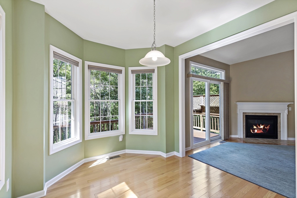 On Clam Pudding Pond, this Franklin-style attached home is located in the sought-after 55+ community of Great Island by Del Webb at The Pinehills. This thoughtfully designed residence offers single-level living with a flexible floor plan, hardwood floors, and plenty of space for both relaxation & entertaining.The formal dining room has French doors and decorative molding. The spacious living room features a cozy gas fireplace and a sliding glass door that leads to a composite deck. The kitchen boasts abundant cabinetry, a pantry, and a sunny eat-in area with a charming bay window. The generous primary suite, has a large walk-in closet and a luxurious en-suite bath with a double vanity, soaking tub, and separate shower. A guest bedroom and a full guest bath complete the main level. The basement is unfinished with slider and windows. This home is ready to move right into!!!