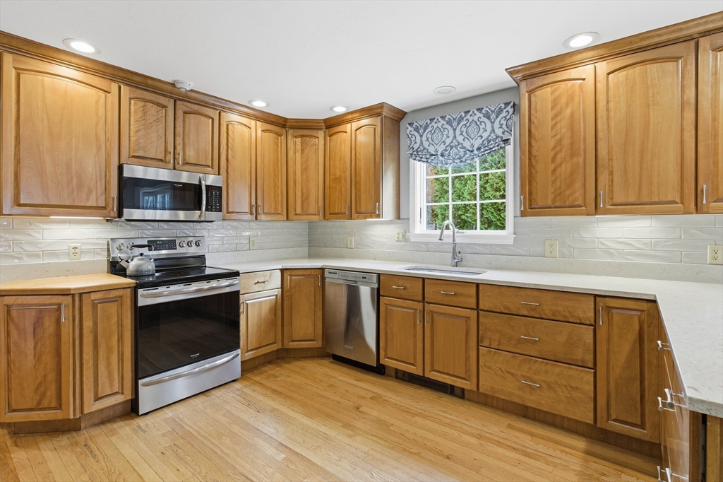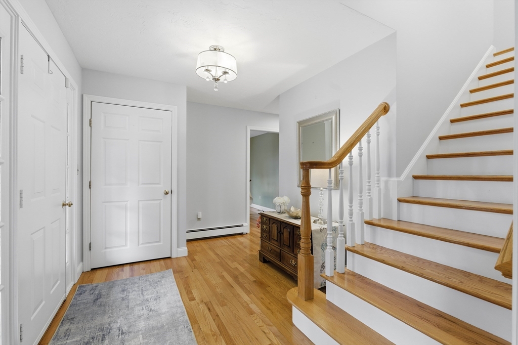 Welcome to this beautiful 4-bedroom Colonial in the highly desirable Nathan Heights neighborhood! Classic curb appeal shines with an inviting farmer’s porch, stone retaining walls, and a fenced backyard featuring a patio, shed, and yard irrigation system. The heated two-car under garage offers year-round convenience. Inside, the updated kitchen with quartz countertops opens to a sun-filled dining area and vaulted family room with a striking stone wood burning fireplace. Additional highlights include a private office with French doors, formal dining room, and first-floor laundry. Hardwood floors run throughout, complemented by a newer roof, boiler, and efficient heat pump systems for heating and cooling. A finished basement adds versatile living space. This home seamlessly combines charm, modern updates, and everyday functionality in one of the area’s most sought-after neighborhoods — and you simply can’t beat the value for this quality!