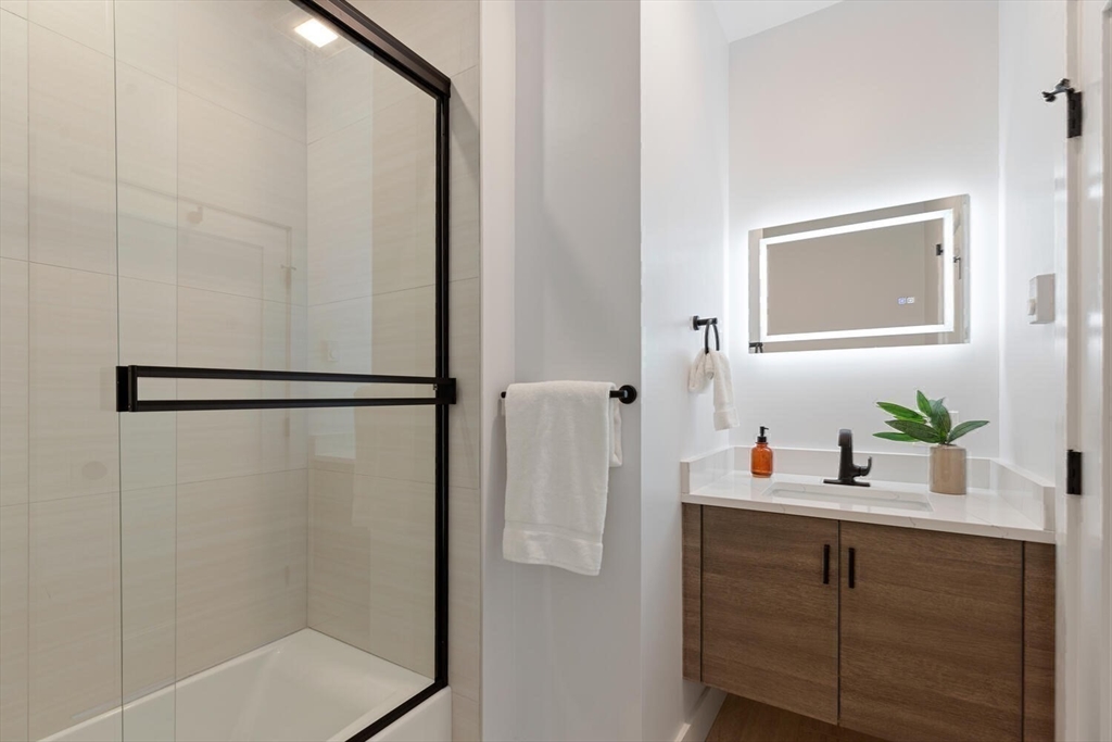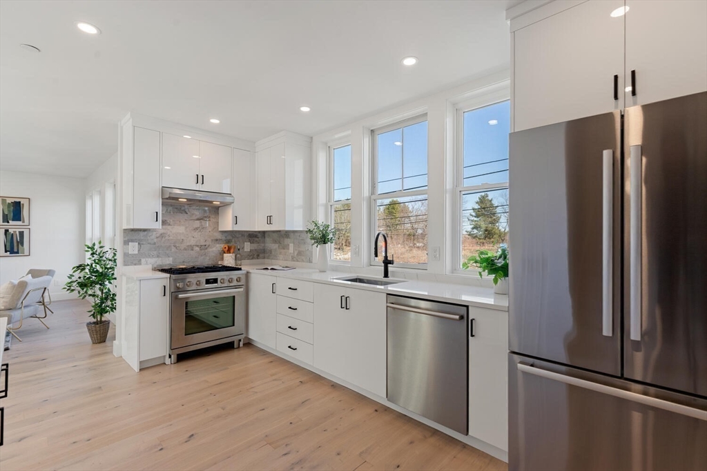 Welcome to the Residences at 656 Mystic Ave. Stunning new construction offering peaceful views of the Mystic River from all 3 levels of this luxury unit that offers 1561 sq ft of living space. Thoughtfully designed 2 bedroom & 2.5 bath unit conveniently located just over 1 mile from Assembly Row & the Orange Line. Heated garage with one deeded space & one flex space with direct access to your home. Private outdoor space includes a fenced in patio and two balconies, one which has direct access from the primary bedroom. Total outdoor space is over 600 sq ft. This home offers Bosch SS appliances that include a gas range, dishwasher, refrigerator and washer & dryer. Quartz countertops and custom cabinetry in the kitchen and bathrooms. Kohler kitchen & bathroom fixtures. Engineered hardwood floors throughout all 3 levels with tile floors in the two full bathrooms.