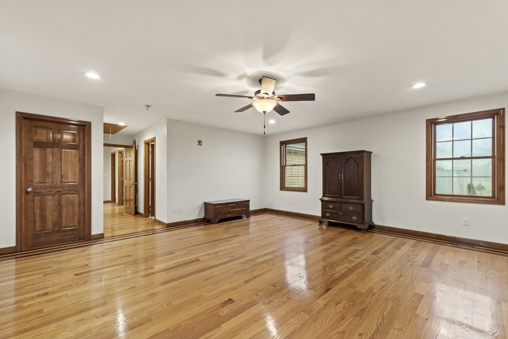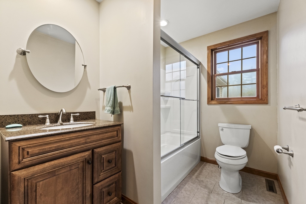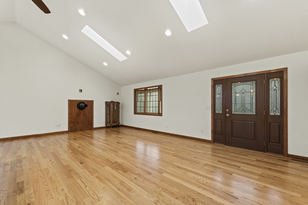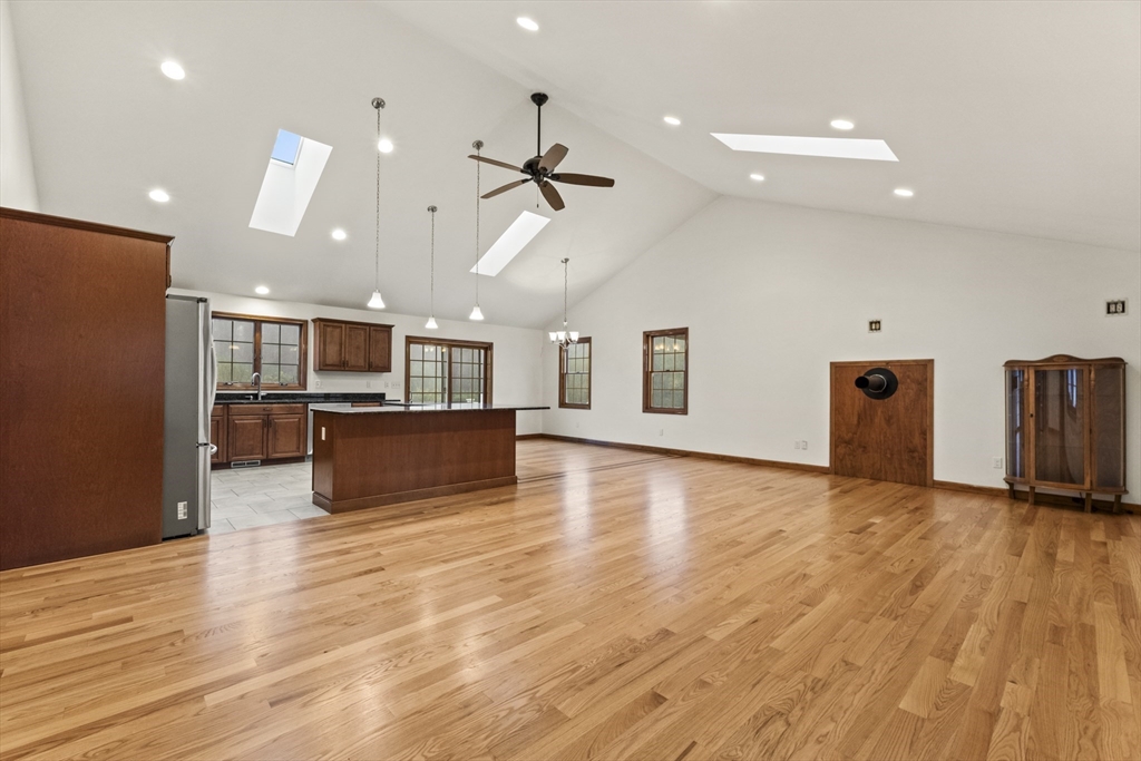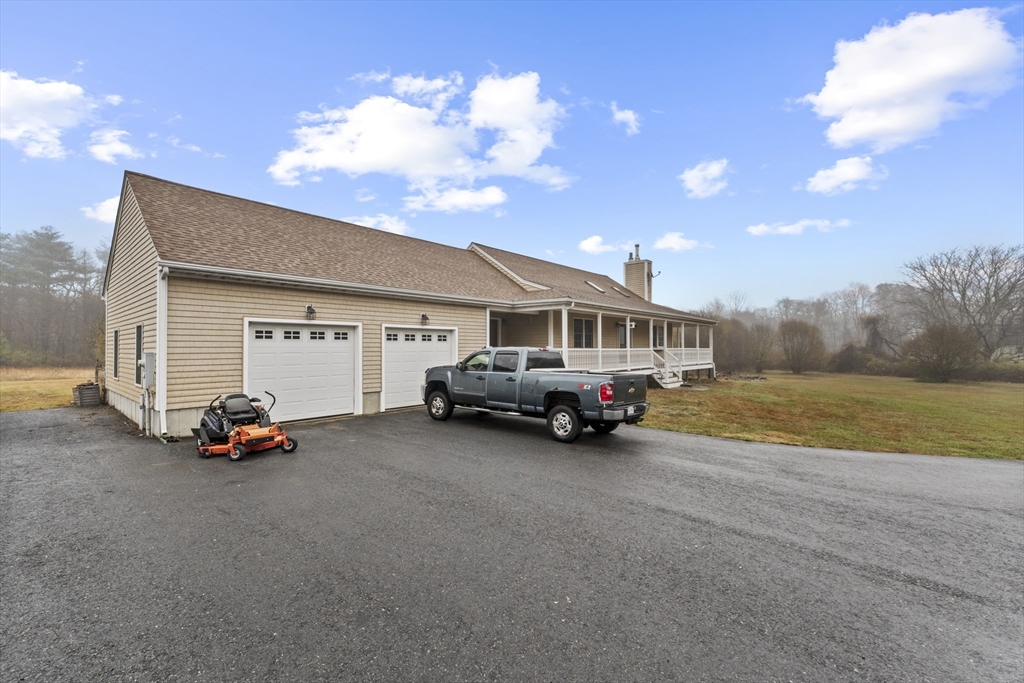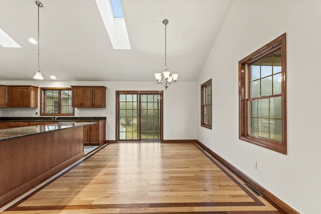 Set on over three acres of privacy, this stunning ranch blends modern comfort with timeless charm. The open-concept layout showcases cathedral ceilings, gleaming hardwood floors, and abundant natural light throughout. The gourmet kitchen offers granite countertops, upgraded cabinetry, a large island, and stainless steel appliances, seamlessly connecting to the dining and living areas for easy entertaining. The spacious main suite features hardwood flooring, recessed lighting, and a luxurious en suite with a whirlpool tub and double vanity. Enjoy quiet mornings on the porch or relax in the peaceful wooded surroundings. With a full basement, attached two-car garage, and central air, this meticulously maintained home offers the perfect balance of style, comfort, and tranquility—an ideal retreat just minutes from city conveniences.