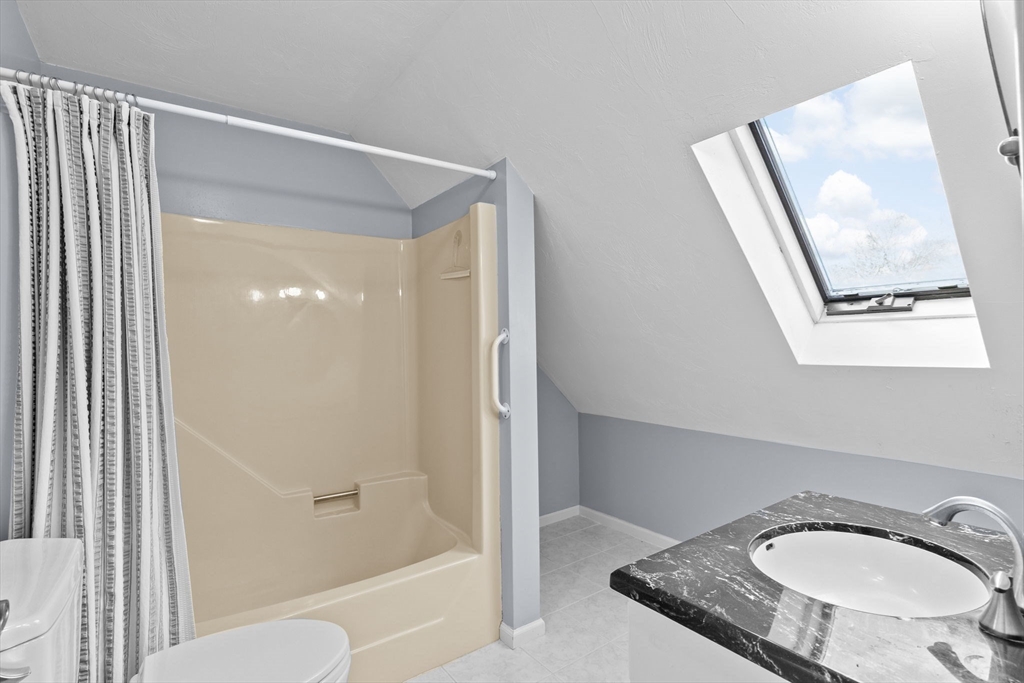 Discover Liberty Street Condominiums—well-maintained, professionally managed townhomes close to downtown Plymouth, highways, restaurants, shopping, and local amenities. This bright, updated unit features a spacious kitchen with ample cabinets and a breakfast bar that opens to the living and dining areas. Enjoy a private deck overlooking the backyard and a cozy living room with a wood-burning fireplace. Upstairs offers two large bedrooms, two skylights, and a versatile loft ideal for a home office or reading area. Recent upgrades include a newer heat pump(2022), water heater, central air (2022) and renovated full bath. Additional highlights: central air, two deeded parking spaces, and a two room, finished walkout basement with two rooms, laundry, storage, and slider access. A perfect blend of comfort, space, and Plymouth convenience.