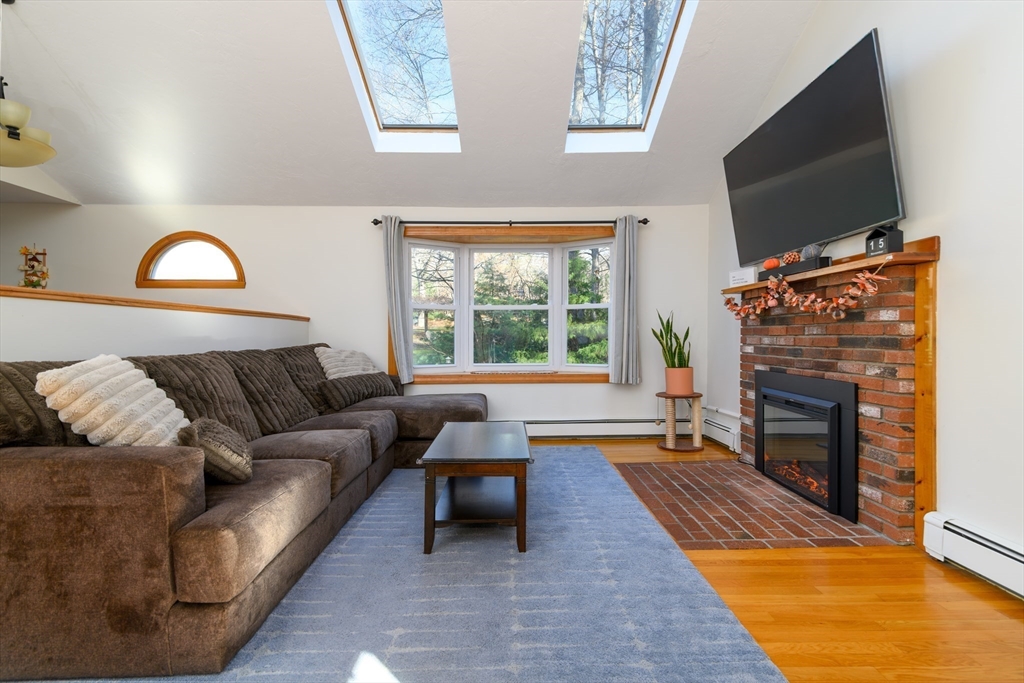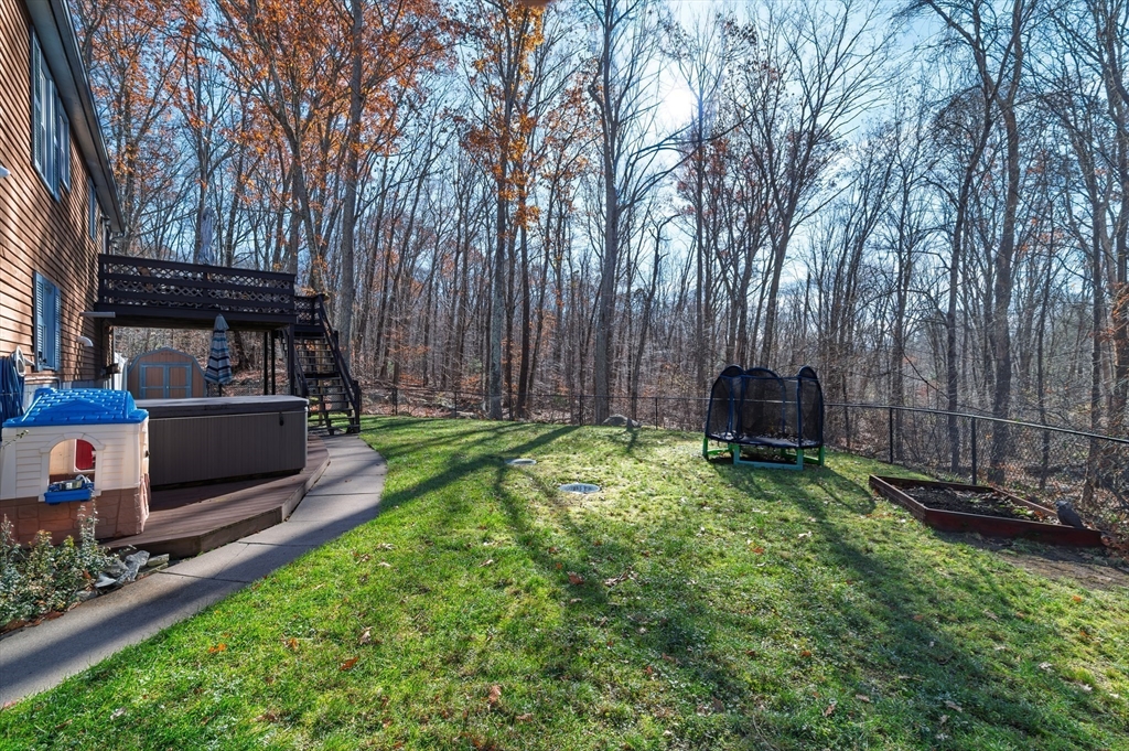 Lovely 3 bed split-level home situated on a quiet cul-de-sac street just 2 minutes from Southwick's Zoo! The property offers an expansive front yard and a fenced-in backyard that abuts the surrounding woods for privacy. Inside, the upper level features an open concept floor plan showcasing vaulted ceilings & lots of natural light! The kitch includes elegant granite CT, newer appliances & a tile floor. The combo din & liv rooms have HWF, slider to back deck, new electric FP & newer mini split to keep you cool during summer months! Upstairs also has a home office, 2 beds & 2 full baths, including the primary BR with en-suite bath for added convenience! The lower level provides additional living space for a family room & has a large 3rd bed! The unfinished section has a mudroom area & storage options along with a combo boiler/HWH, new in Aug '25! Walkout to the backyard with a fence, 2 sheds, a deck & hot tub! This house has it all so don't delay and be in your new home for the holidays!!