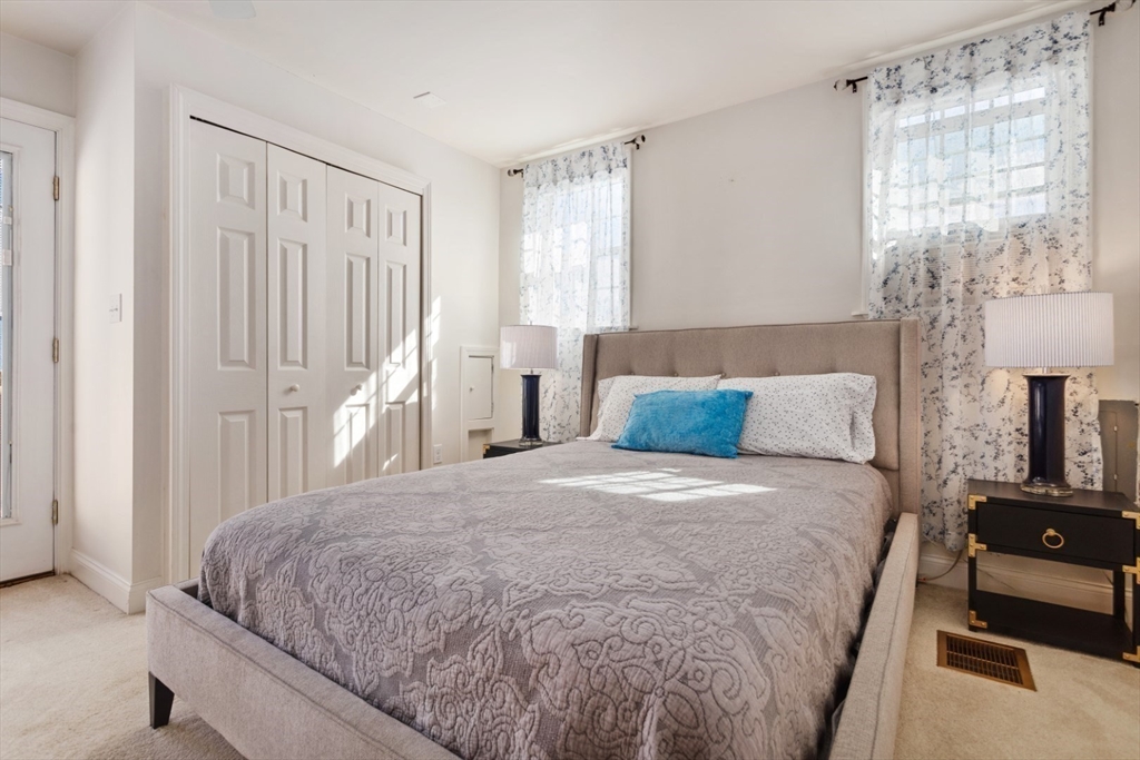 Delightful & inviting year round getaway. Condo Alternative. Welcome to 20 Railroad Avenue, where convenience meets comfort. This sun-filled natural sunlight home offers a spacious front porch, a large kitchen with stainless steel appliances, and in-unit washer and dryer on the first floor. Upstairs, the primary bedroom opens to french doors to a wonderful balcony with an additional bedroom and full bath completing the space. Two-car parking is included. Enjoy in-town living at its best. This home is directly across from the commuter rail and just steps to shops, banks, restaurants, markets, beaches, and more. Bonus area in basement with plumbing connections for an additional bathroom. This Rockport gem is worth seeing. Has great potential and has a history of commercial use. A commuters dream including shopping, restaurants, and the Shalin Liu Music Center.