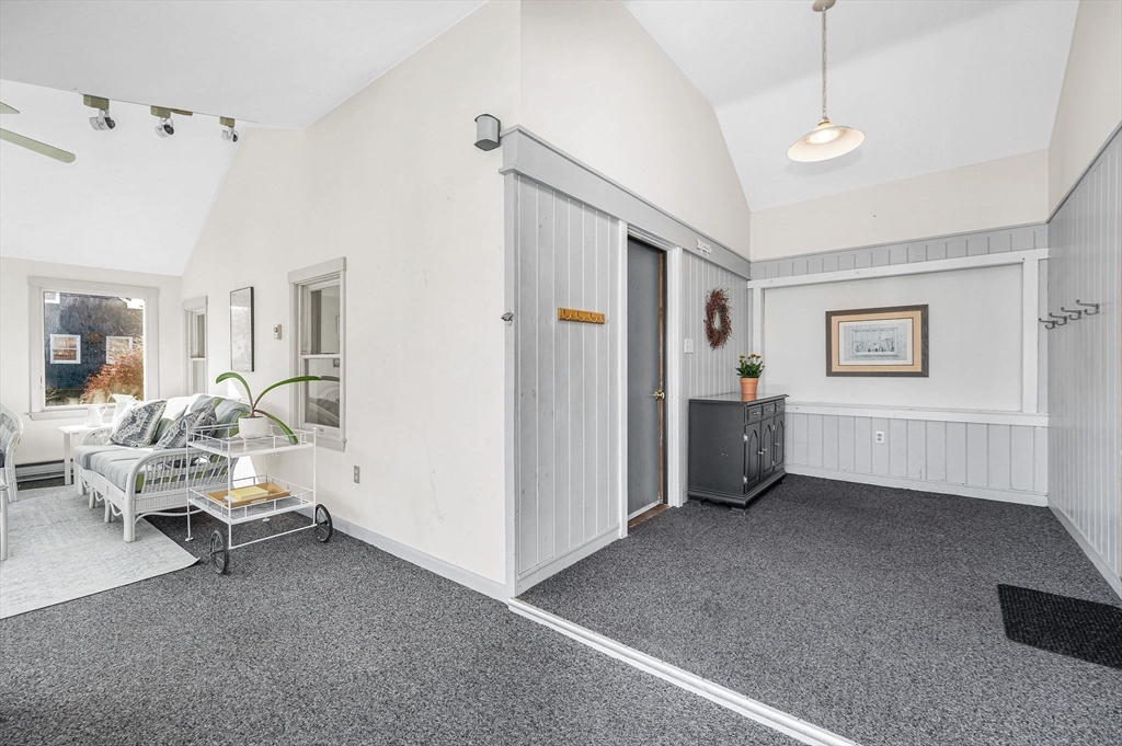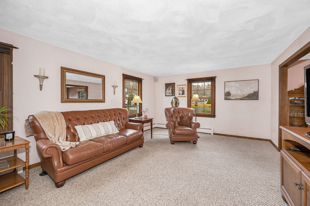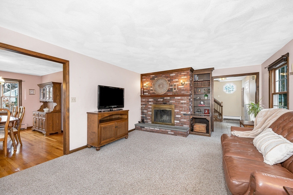 Welcome home to this charming gambrel steps from the beautiful Merrimack River Park. Inside you will be greeted by a warm living room with a wood burning fireplace perfect for cozy winter nights. The living room opens up to the dining room making this house ready to entertain in. The eat-in kitchen features quality wood cabinets and a gas range. A large center island is made for gathering. Beyond the kitchen, you will find a mudroom area connecting the 2 car garage as well as a generous heated sunroom that is bathed in sunlight. From the sunroom, walk out to the large deck and enjoy the beautifully maintained yard. Upstairs there are 4 bedrooms and a full bathroom. The primary bedroom provides lots of space with window seats that double as cedar storage. The 4th bedroom can be used as a smaller bedroom, office or walk-in closet. The lower level is partially finished and provides extra room for a family room, office or home gym. Make this home yours!